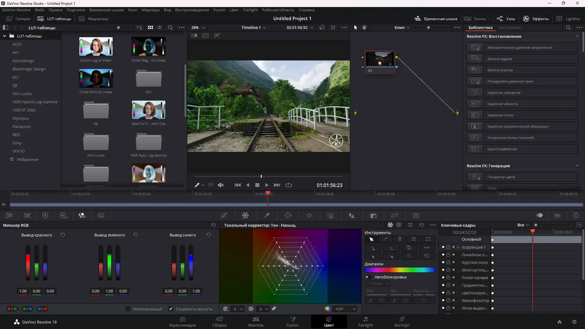 - Богатый функционал для визуальных эффектов и графики на базе узлов, включая 3D-композицию и ротоскопирование.