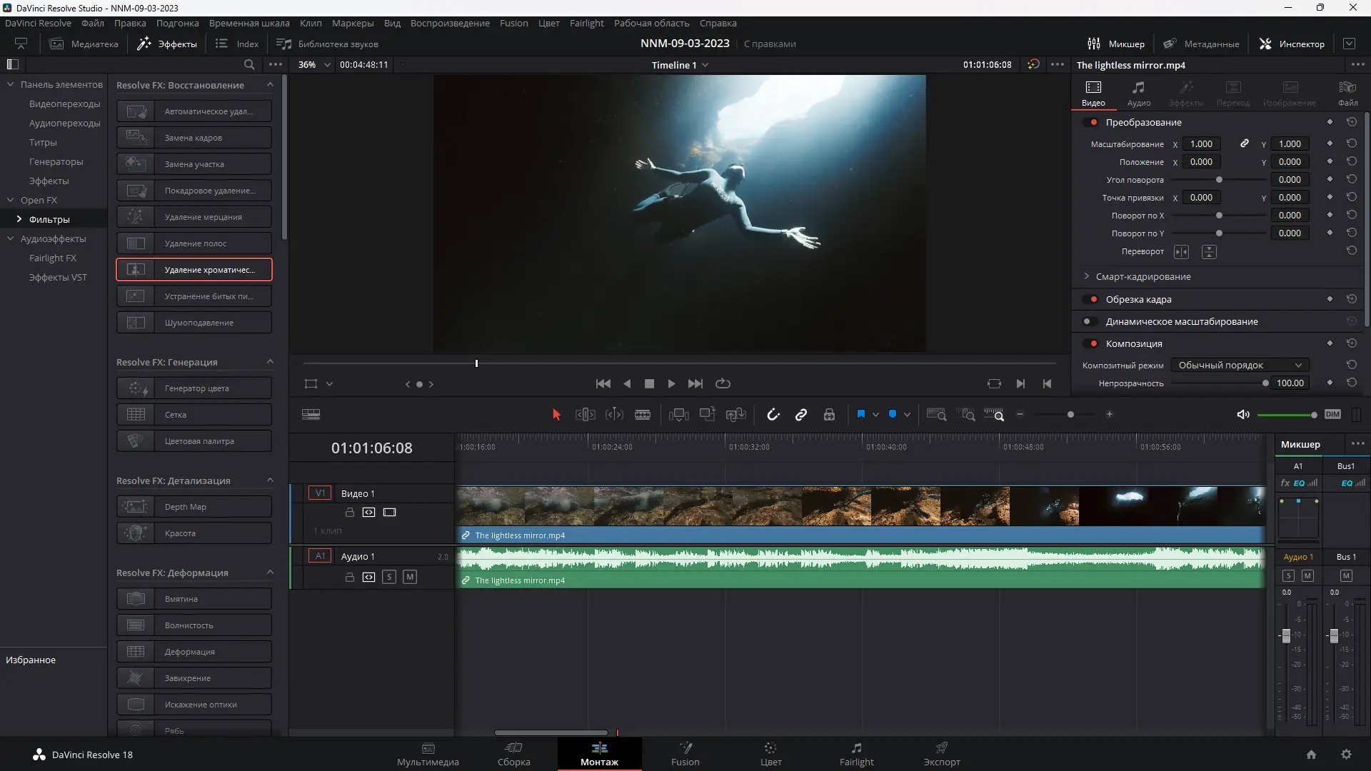 Blackmagic Design DaVinci Resolve — мощный инструмент для профессионального видеомонтажа и постобработки. Он сочетает в себе все необходимые этапы производства и обладает расширенными возможностями для калибровки цвета, работы со звуком и визуальными эффектами.