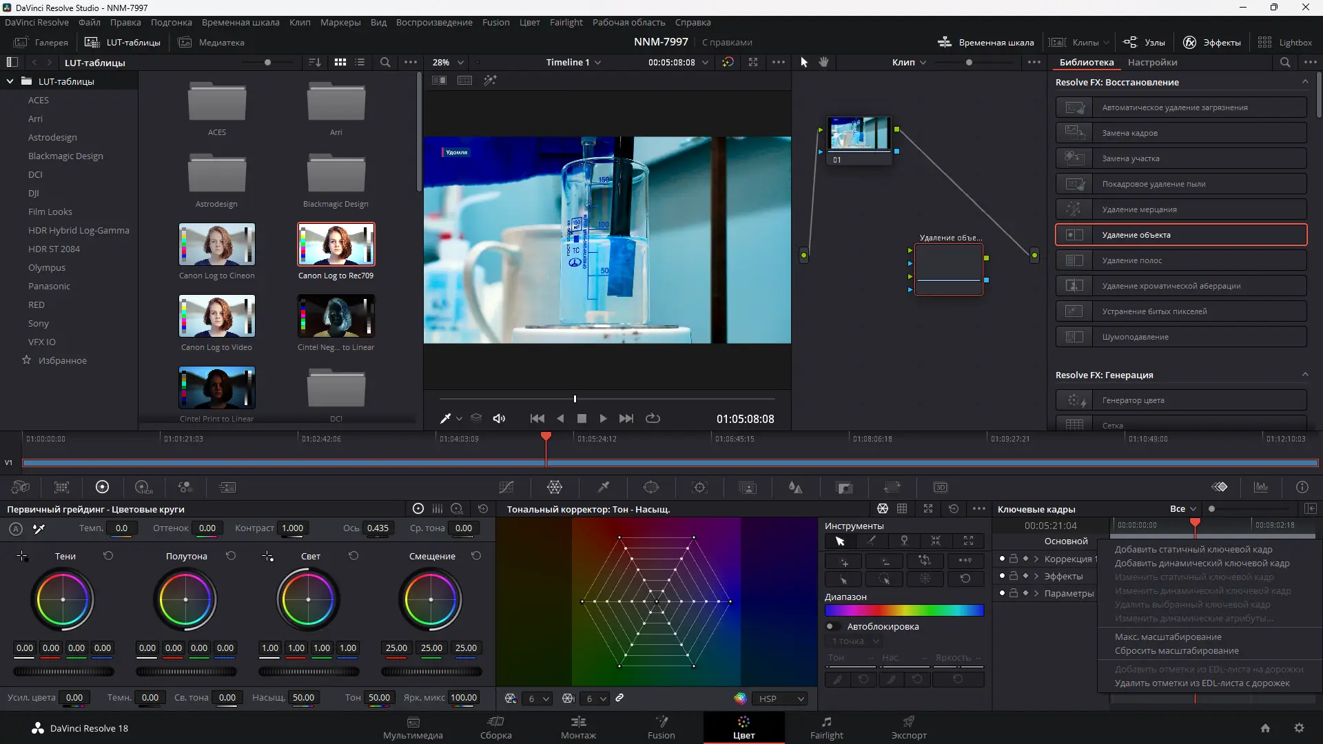 - Полноценный набор инструментов для монтажа, грейдинга, VFX и звука в едином интерфейсе.
