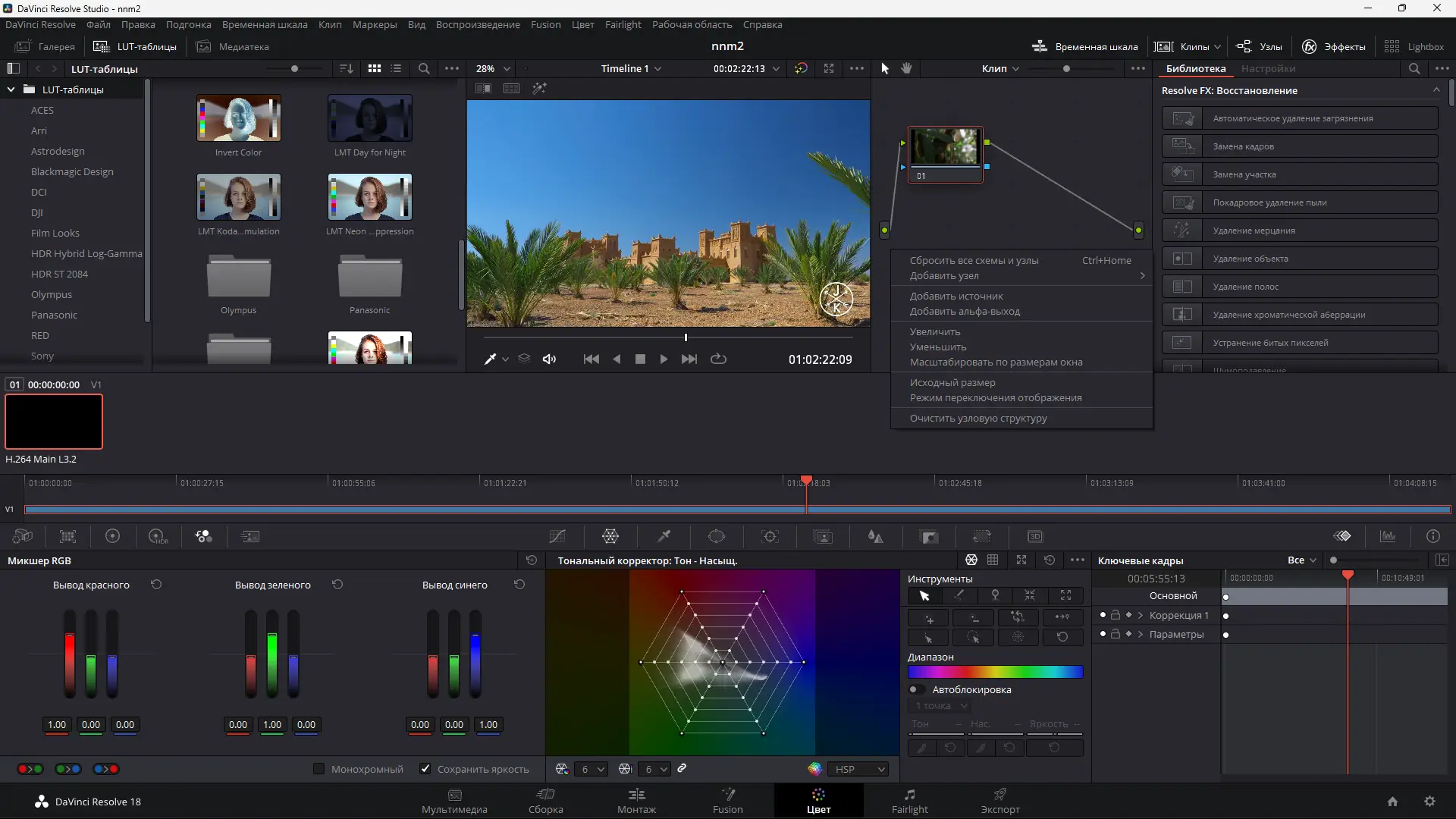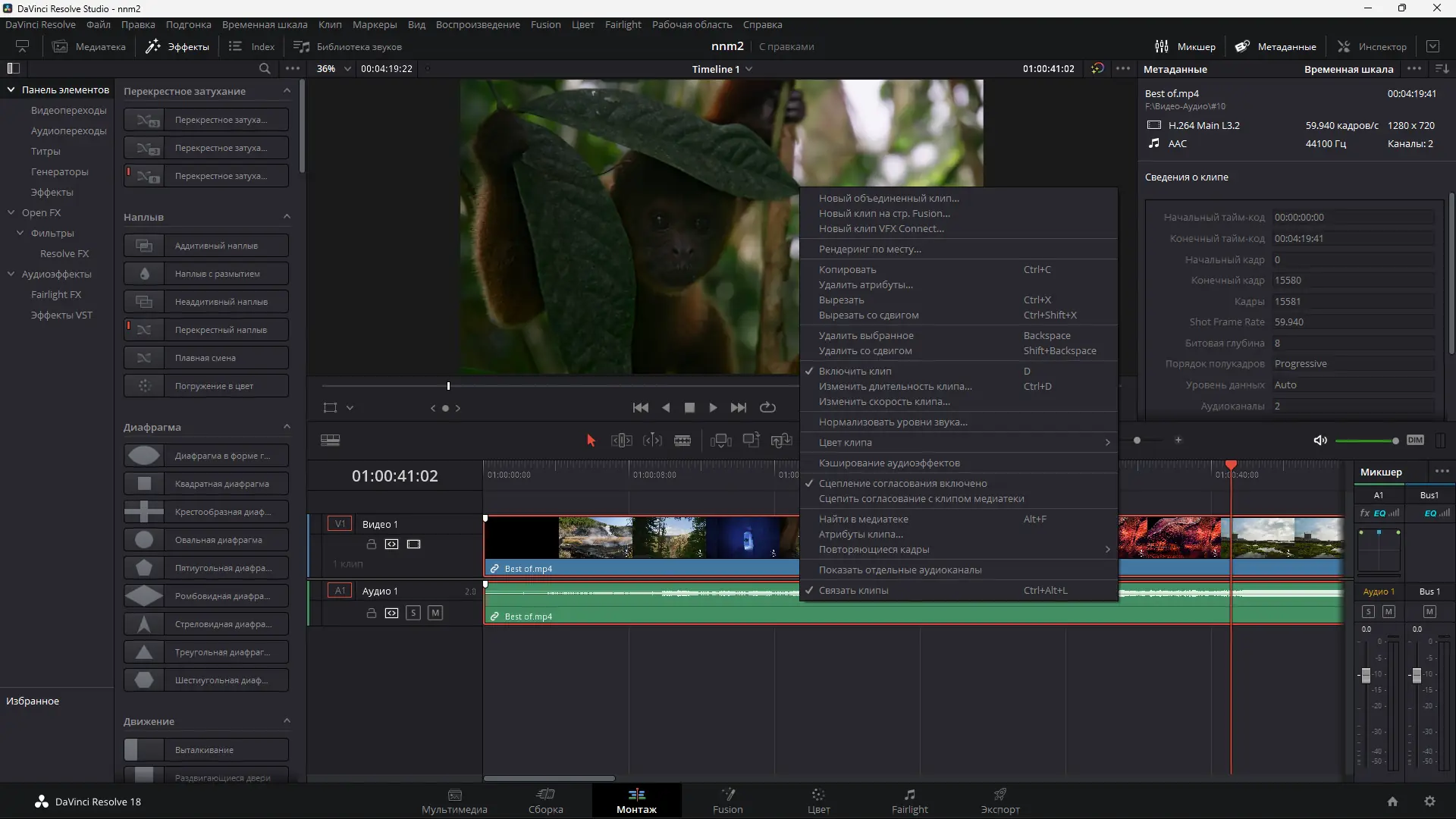 - Обширный функционал для монтажа, цветокоррекции, VFX и обработки звука в одном приложении.