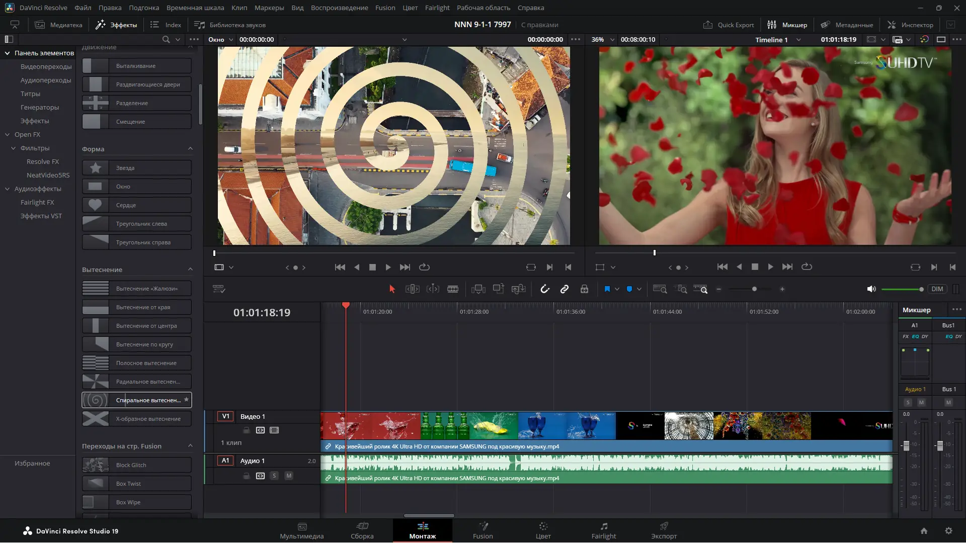 - Широкий функционал для цветокоррекции, VFX и аудиопостобработки.