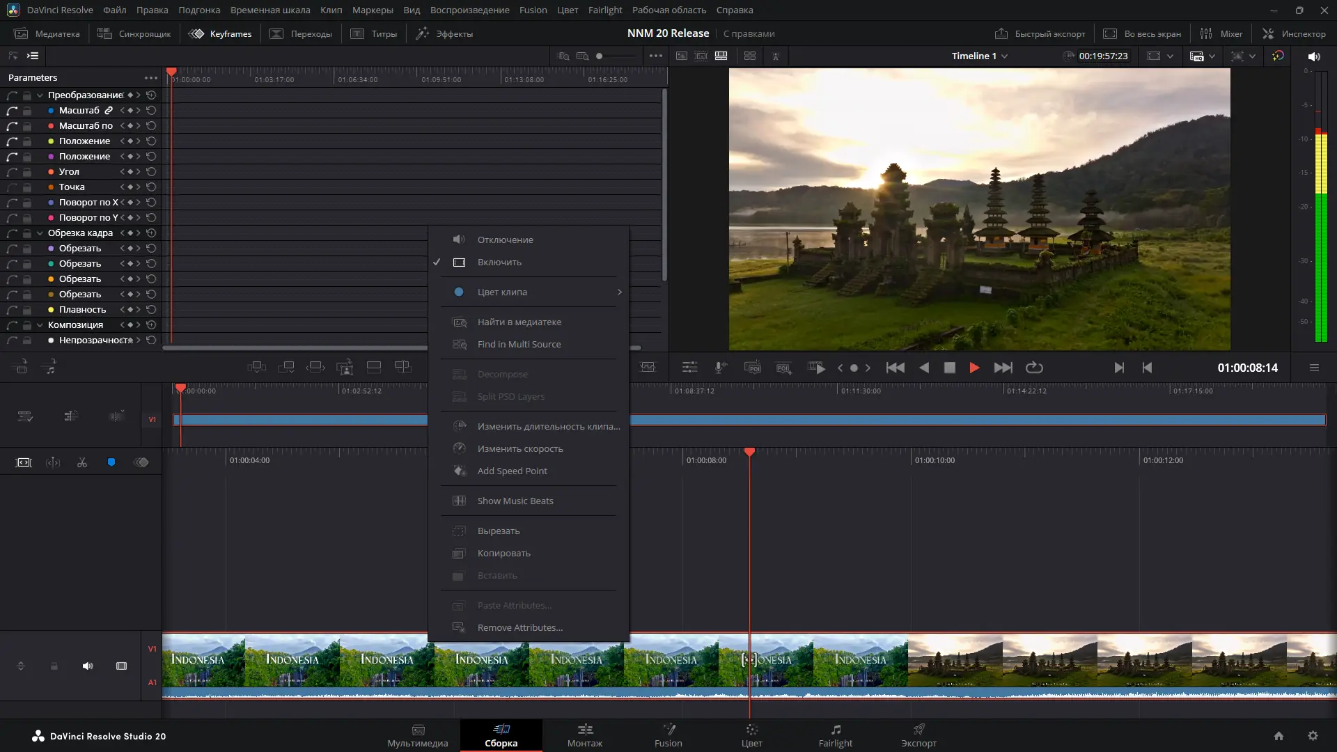 - Создание и добавление визуальных эффектов, анимации и графики с помощью Fusion.