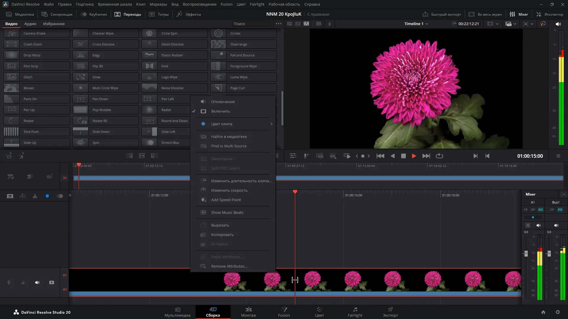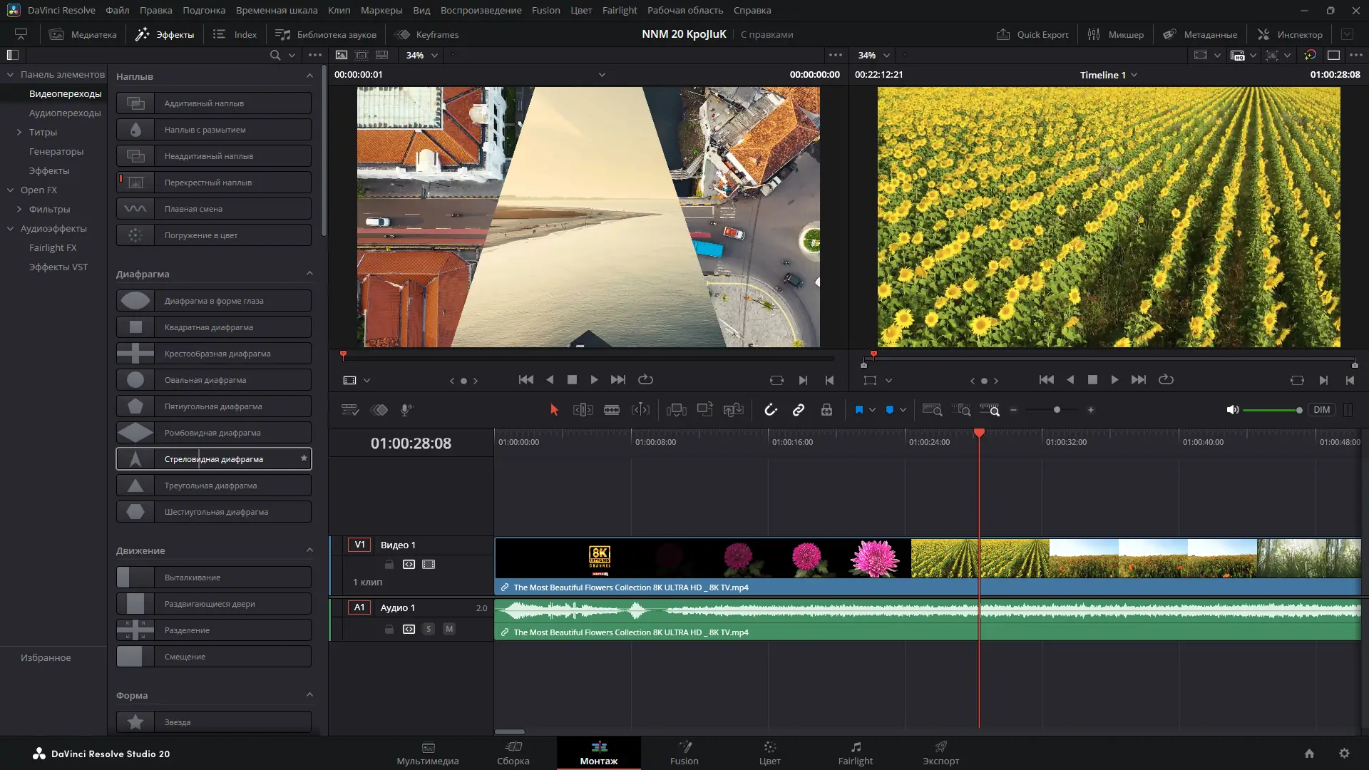 - Единственное решение, объединяющее монтаж, цветокоррекцию, VFX и звук.