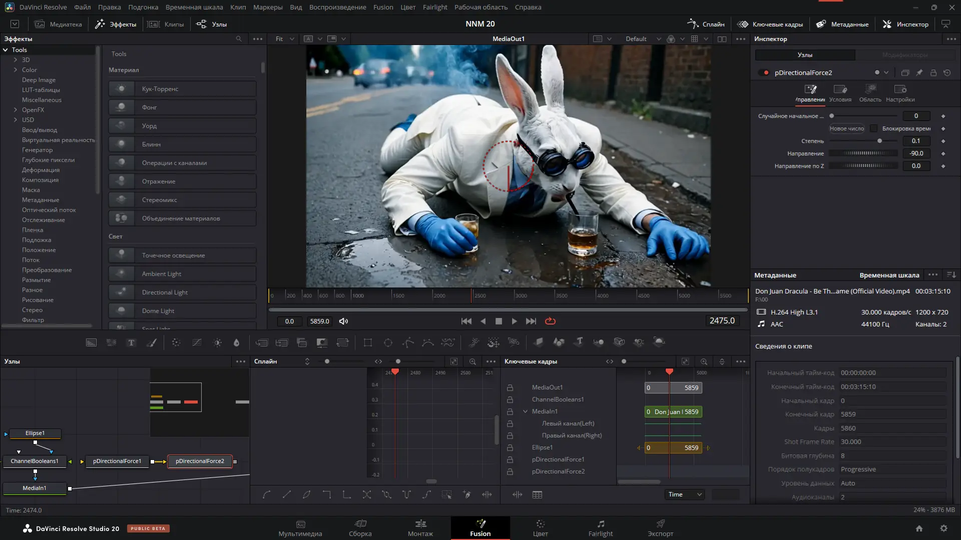 - Создание и редактирование визуальных эффектов и графики во Fusion с узловой системой и современными средствами анимации.