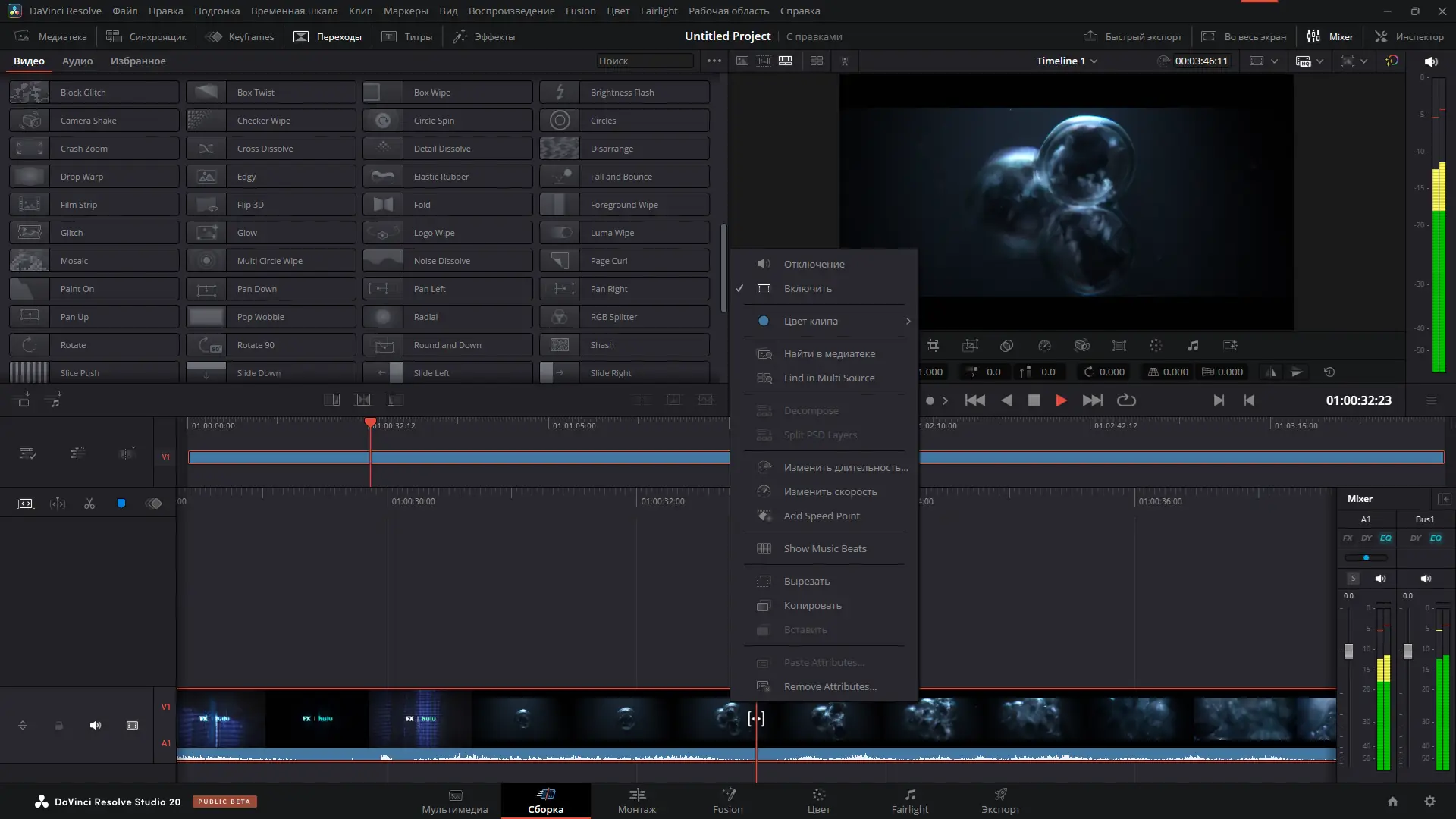 - Полный цикл обработки — монтаж, цветокоррекцию, VFX, звук и экспорт в одном приложении;