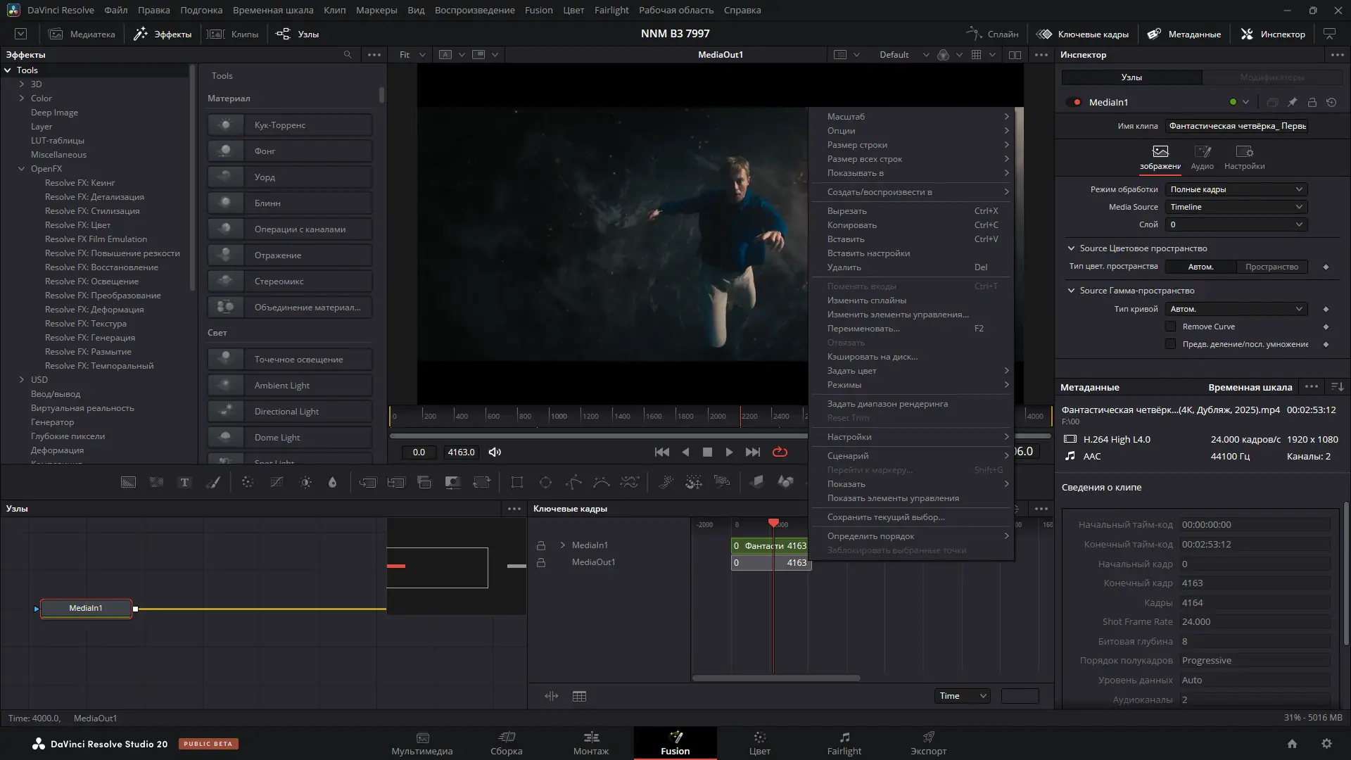 - Инструменты создания визуальных эффектов и анимационной графики на базе узлов, с возможностью использования 2D и 3D‑эффектов.