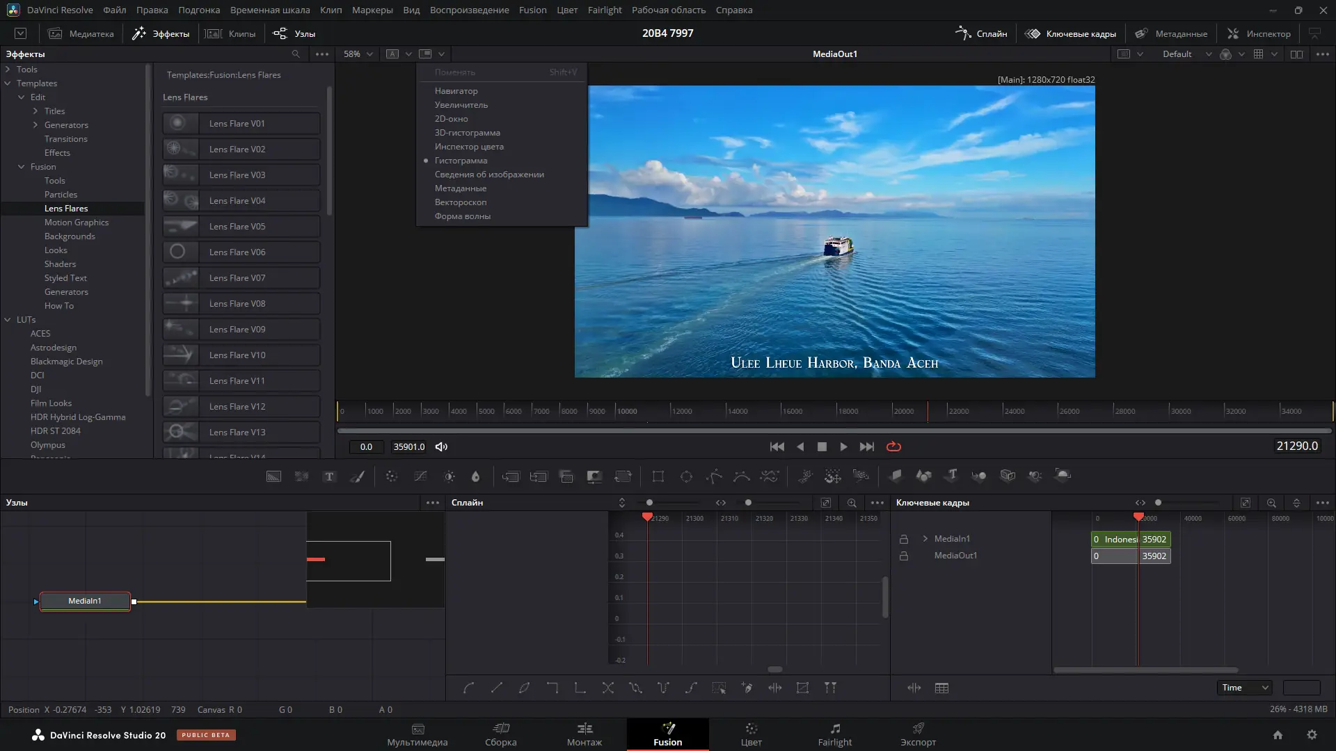 - Создание визуальных эффектов, графики и анимации в Fusion на базе узловой системы.