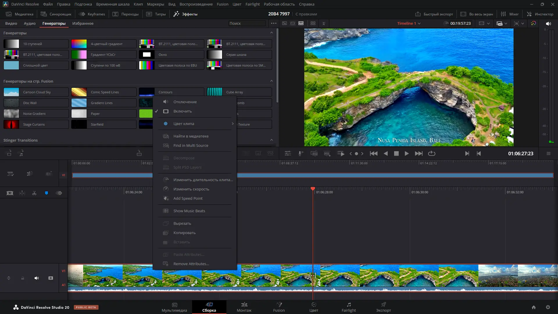 - Многофункциональность — монтаж, цветокоррекция, VFX, звук и экспорт в одном приложении.