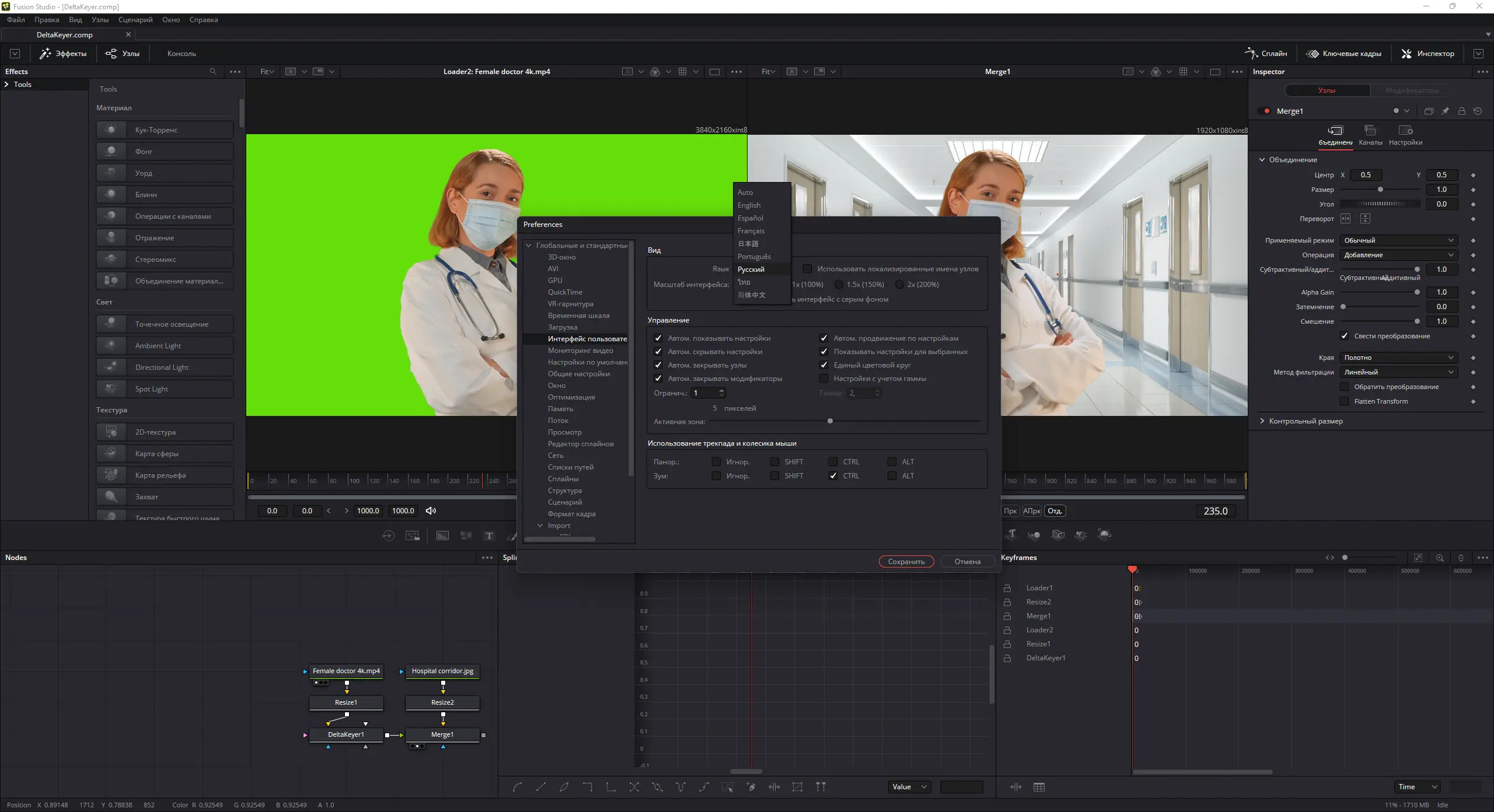 - Создание и редактирование композитов с помощью узлового редактора, который предлагает гибкость и точность в работе над эффектами.