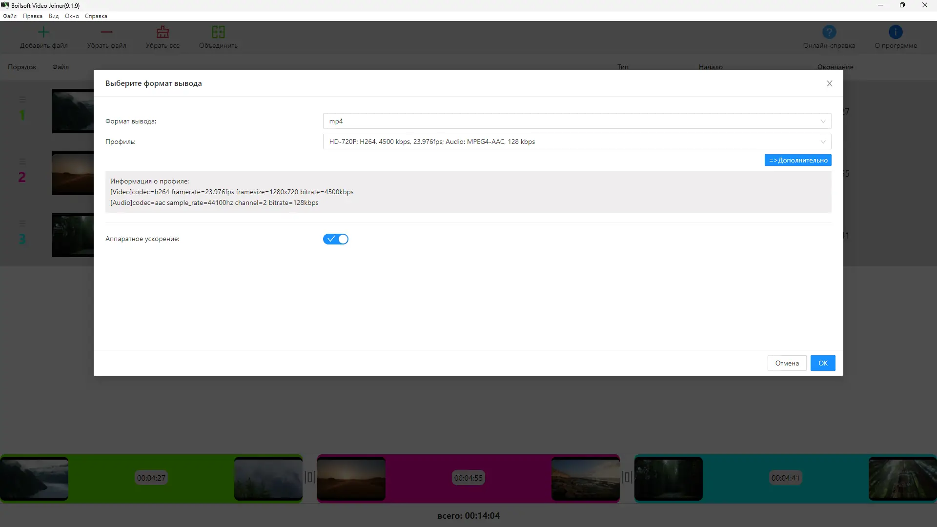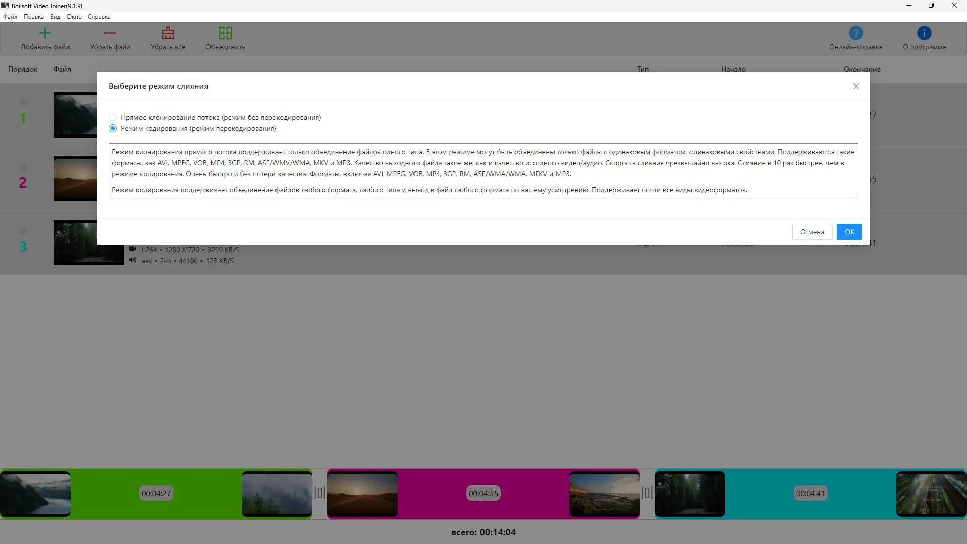 - Режим Encode Mode — объединение с перекодированием при необходимости.