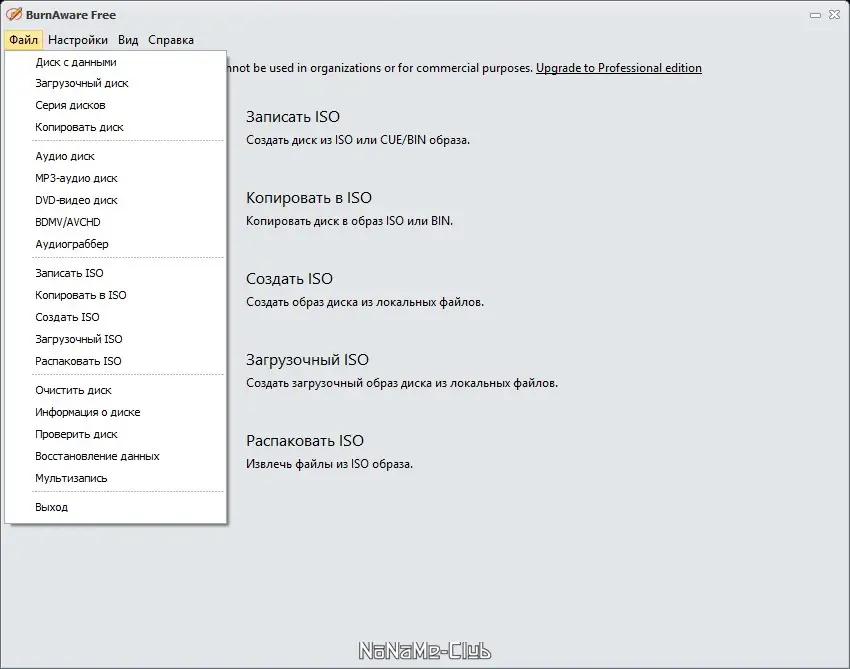 BurnAware — это бесплатная программа для записи CD, DVD и Blu-ray дисков, сочетающая в себе простоту использования и широкий функционал. Она предназначена для выполнения различных задач по записи данных, аудио и видео контейнеров, а также создания и проверки образов дисков. Благодаря поддержке современных интерфейсов и мультисессии, BurnAware подходит как для домашнего использования, так и для профессиональных целей.