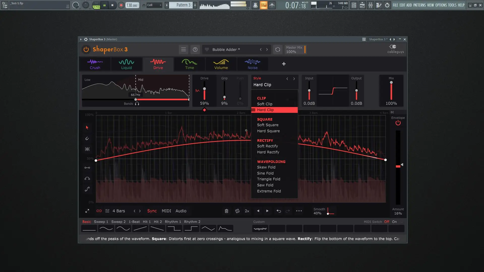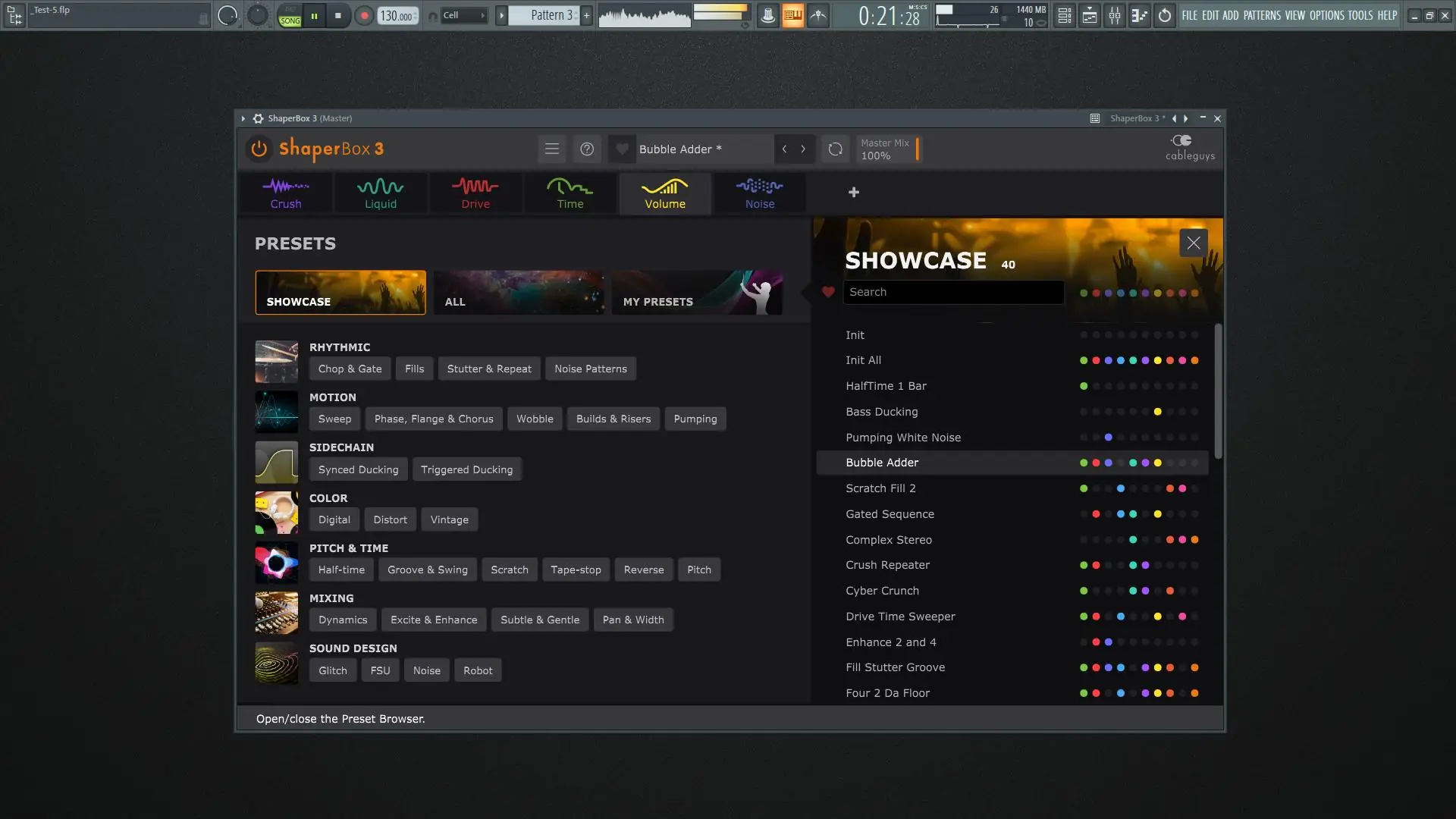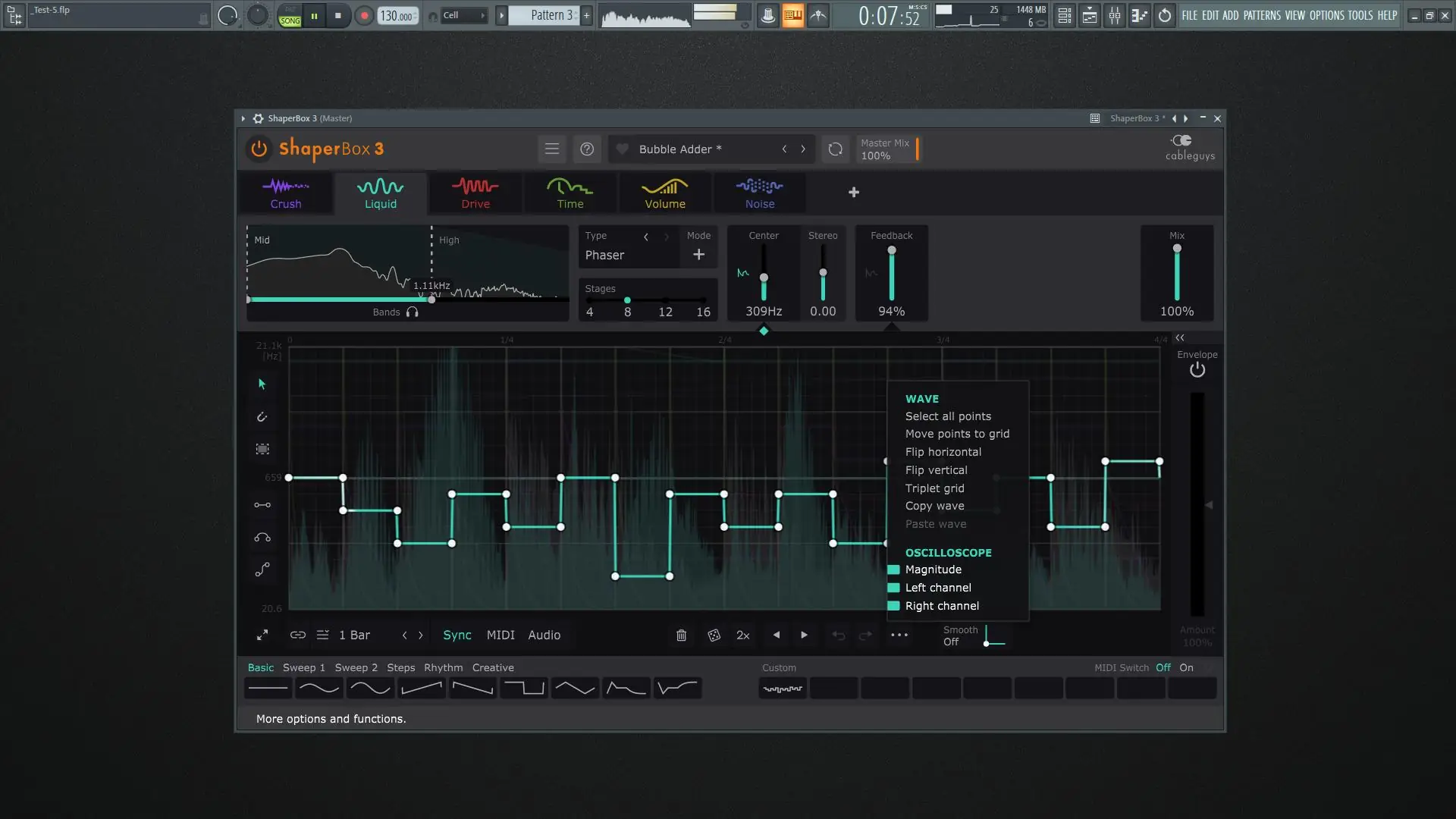 - Объединение эффектов Time, Drive, Noise, Liquid, Filter, Crush, Volume, Pan и Width для создания гибких звуковых сценариев.