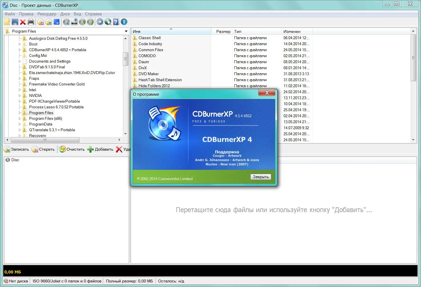 Бесплатная программа для записи CD и DVD с расширенными возможностями, поддерживающая создание и копирование дисков, работу с ISO-образами и аудио-CD.