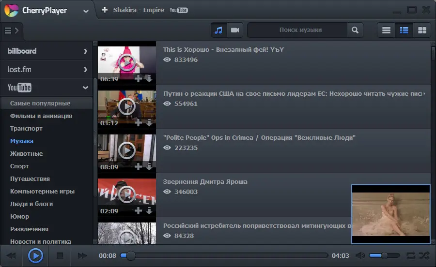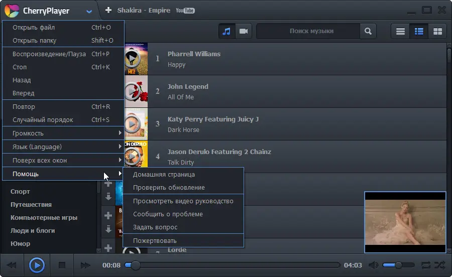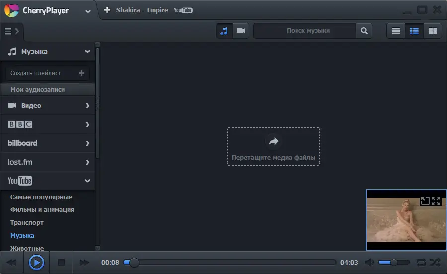 CherryPlayer — это универсальный мультимедийный плеер, предназначенный для комфортного прослушивания музыки и просмотра видео. Он обеспечивает воспроизведение потоковых потоков из VK, YouTube и Last.fm, а также позволяет загружать видео с YouTube для последующего просмотра без подключения к интернету. Поддержка широкого спектра форматов делает его удобным инструментом для работы с различными мультимедийными файлами без необходимости установки дополнительных кодеков. Пользователи могут легко создавать списки воспроизведения, перетаскивать файлы и управлять медиаконтентом с минимальными усилиями.