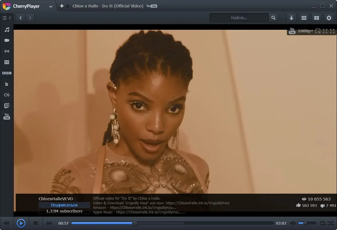 CherryPlayer — бесплатный мультимедийный проигрыватель для Windows, предоставляющий возможность воспроизводить разнообразные медиафайлы, а также взаимодействовать с популярными онлайн-сервисами. Эта программа идеально подходит для тех, кто ищет универсальное решение для прослушивания музыки и просмотра видео, объединяя локальные и онлайн ресурсы в одном интерфейсе.