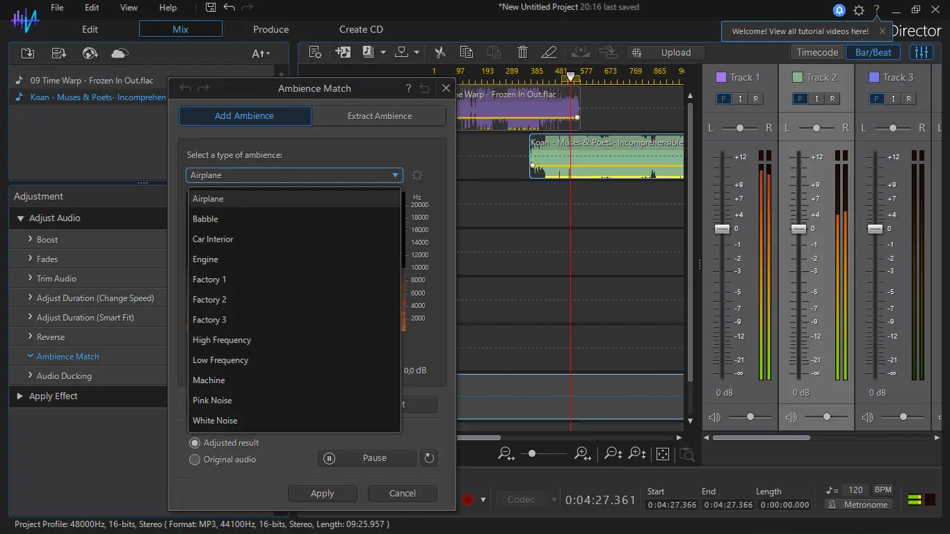 Программа предоставляет расширенные возможности для редактирования и улучшения аудиодорожек, в том числе автоматическое удаление порывов ветра с помощью искусственного интеллекта, изменение интонаций диалогов, удаление хлопков и шумов, а также возможность визуально управлять пространственным звуком и создавать объемное звучание. Благодаря автоматической настройке фоновой музыки под длину видео и поддержке редактирования в формате 360°, использование AudioDirector становится максимально удобным для современных требований контент-мейкеров.