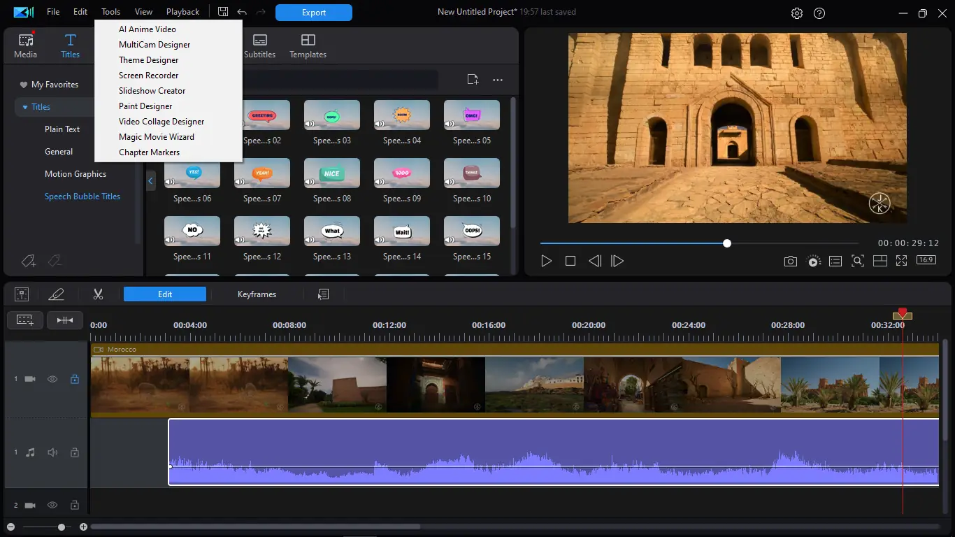 - Удобные инструменты для создания эффектных титров, эффектов частиц и меню дисков.