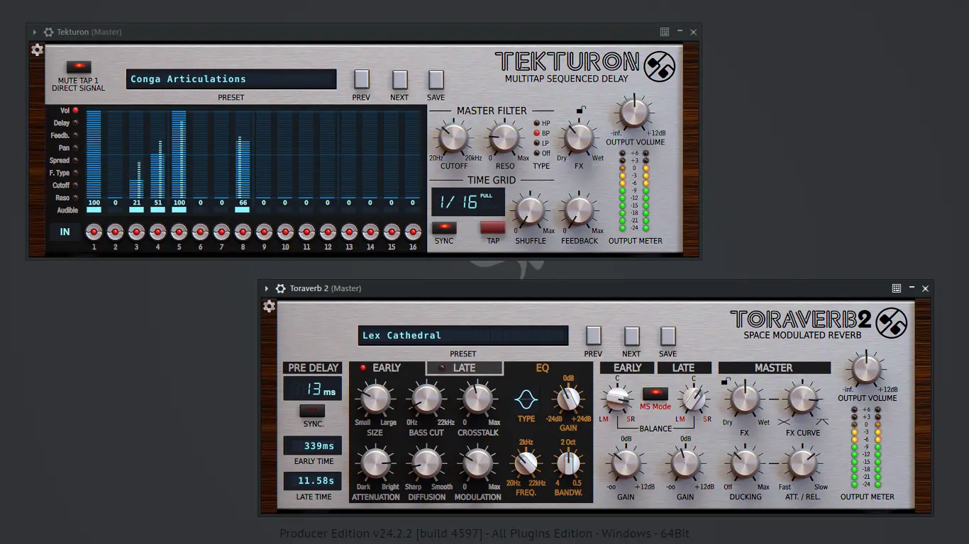 Коллекция плагинов, включающая 14 профессиональных эффектов, предназначена для расширения возможностей звукового дизайна и миксинга. Эти инструменты позволяют создавать широкий спектр эффектов — от насыщенной реверберации до сложных модульных искажений, гармонизирующих и пространственных обработок, что способствует достижению уникального звучания каждого проекта.