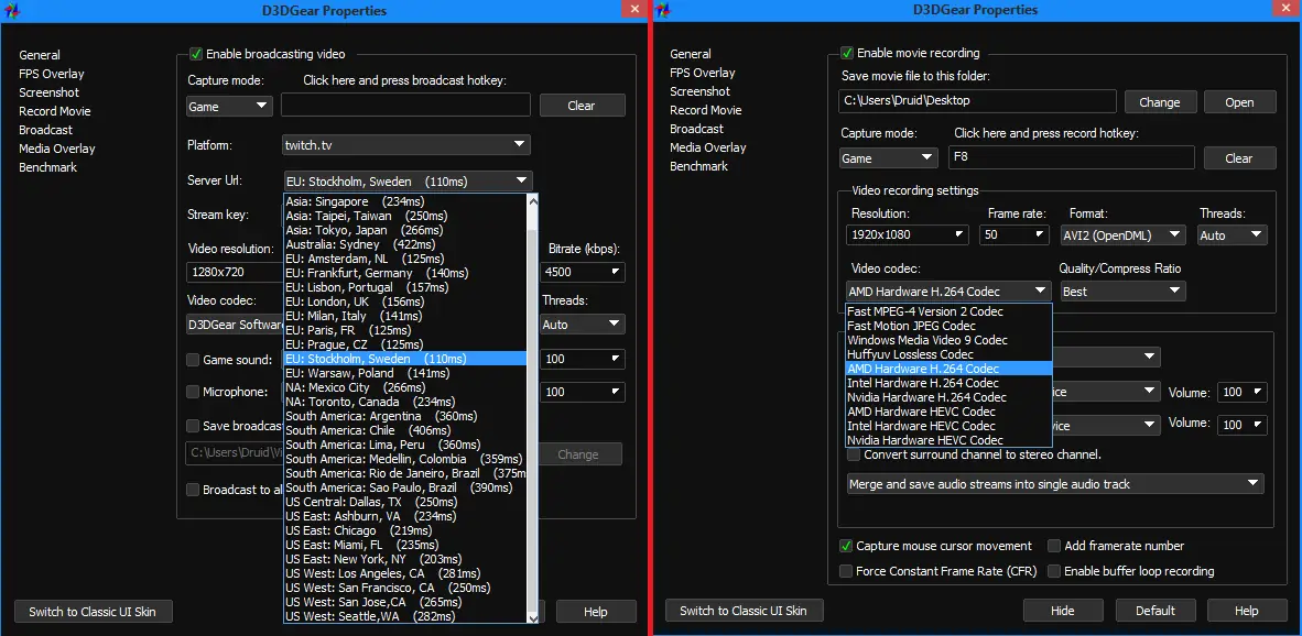 - Трансляция игрового процесса на twitch.tv, YouTube, Facebook и другие платформы