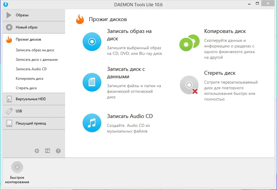 - Возможность создания до 4 виртуальных приводов для параллельной работы с несколькими образами.