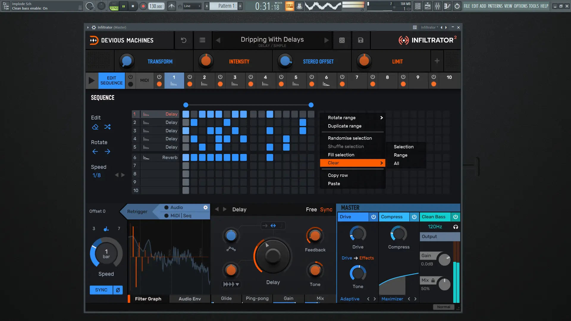 Можно комбинировать эффекты различного типа, экспериментировать с уникальными формантными и гребенчатыми фильтрами, а также настраивать параметры для достижения желаемого звука. Благодаря системе модуляции, включающей случайные паттерны, евклидовы ритмы и привязку высоты тона, результат может стать по-настоящему уникальным. Весь потенциал Infiltrator раскрывается в комбинациях эффектов, что позволяет создавать сложные и запоминающиеся звуковые текстуры.