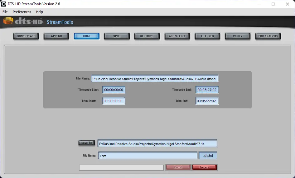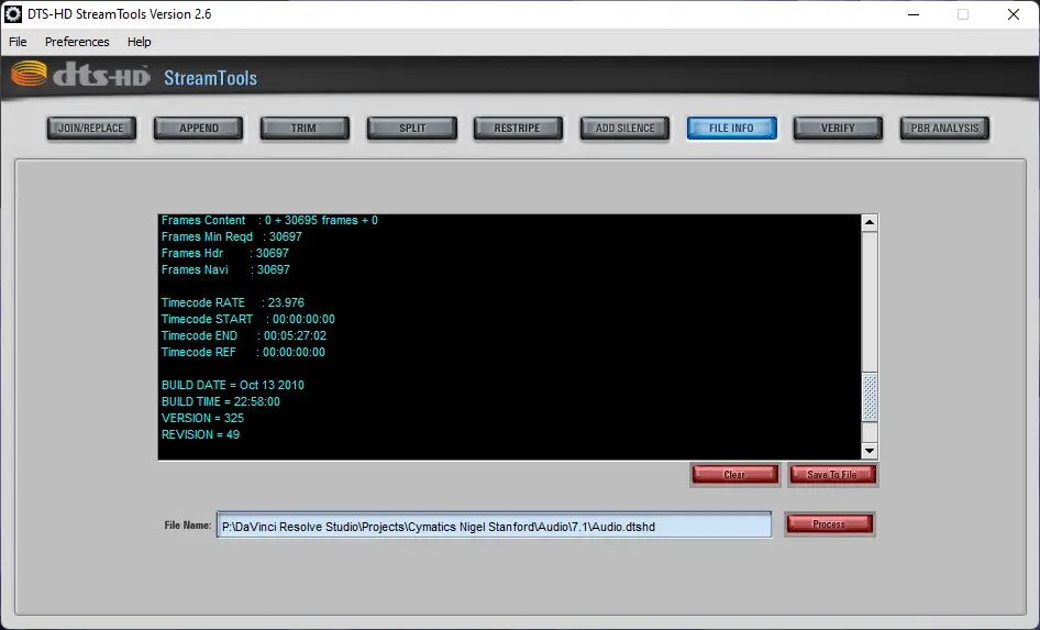 Программа DTS-HD Master Audio Suite предназначена для кодирования потоков DTS практически всех модификаций. Она позволяет сохранять многоканальный звук в формате DTS-(.dtshd), DTS-(.cpt) или DTS-(.WAV), обеспечивая высокое качество звука для профессионального использования.