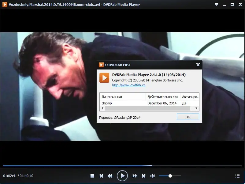 - Копируйте файл FABPLAYER_RUS.lng в папку C:\Program Files (x86)\DVDFab Media Player 2\language, заменяя существующий.
