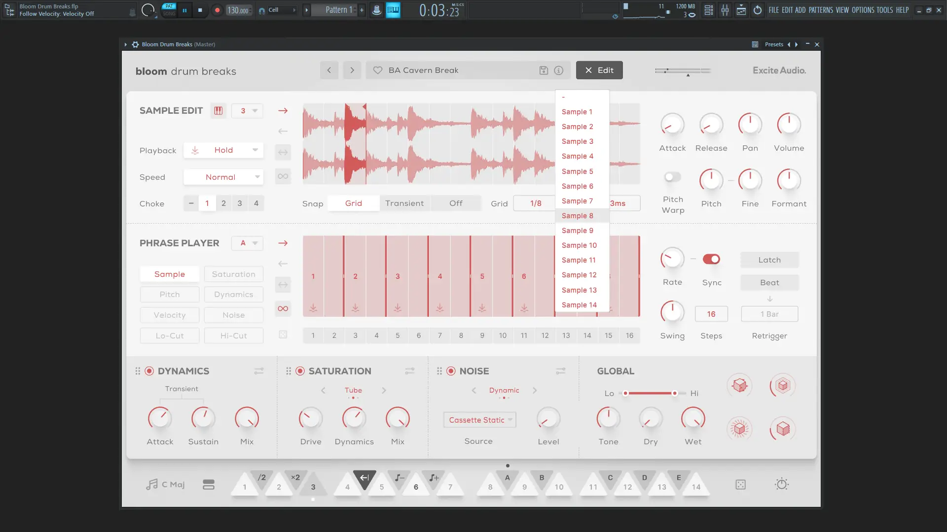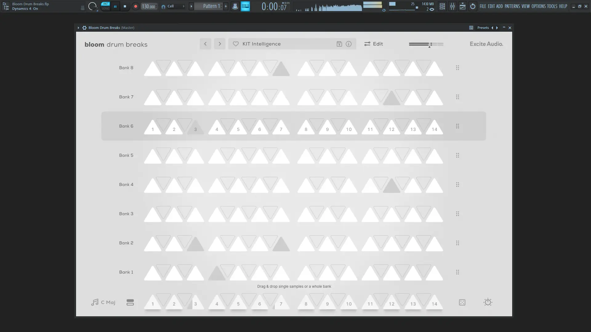 Bloom Drum Breaks создан специально для музыкантов и продюсеров, которые ищут универсальный инструмент для внедрения разнообразных ритмов в свои треки — от пульсирующих брейков драм-н-бейса до расслабленных хип-хоп битов и сложных брейккоровых вставок.