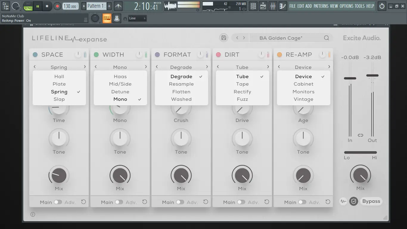 - Пять эффектных модулей: Re-amp, Dirt, Format, Width и Space для комплексной обработки