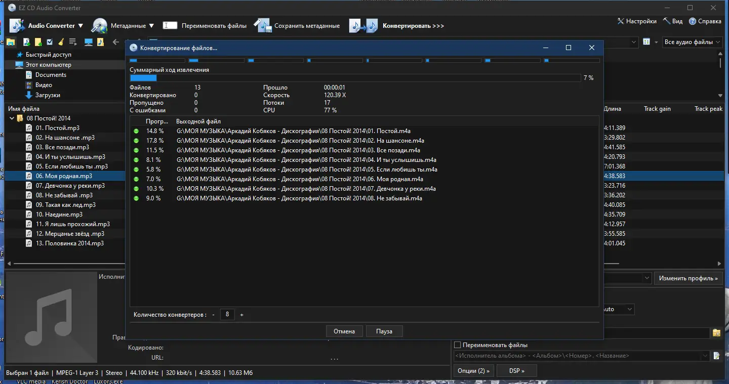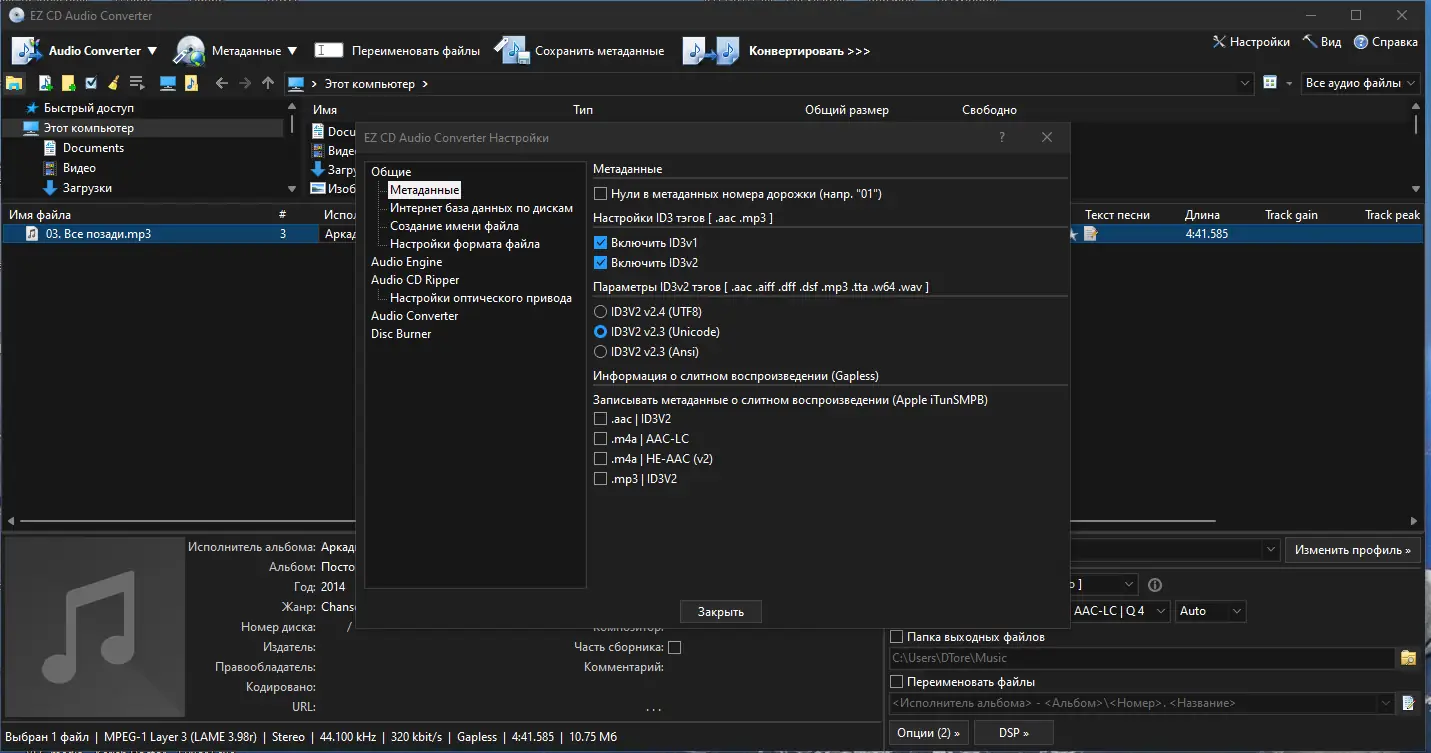 EZ CD Audio Converter — универсальный инструмент для преобразования, записи и обработки аудиофайлов. Поддерживает работу с множеством форматов, обеспечивая высокое качество звука и удобство в использовании.