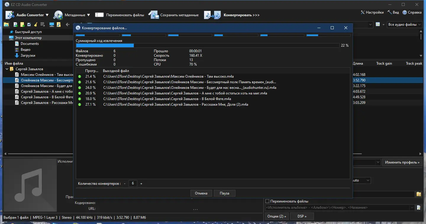 EZ CD Audio Converter — это универсальная утилита для преобразования и записи аудио файлов, а также работы с аудио-CD. Поддержка множества форматов и высокая производительность делают её одним из лучших решений для обработки звука в домашних условиях.