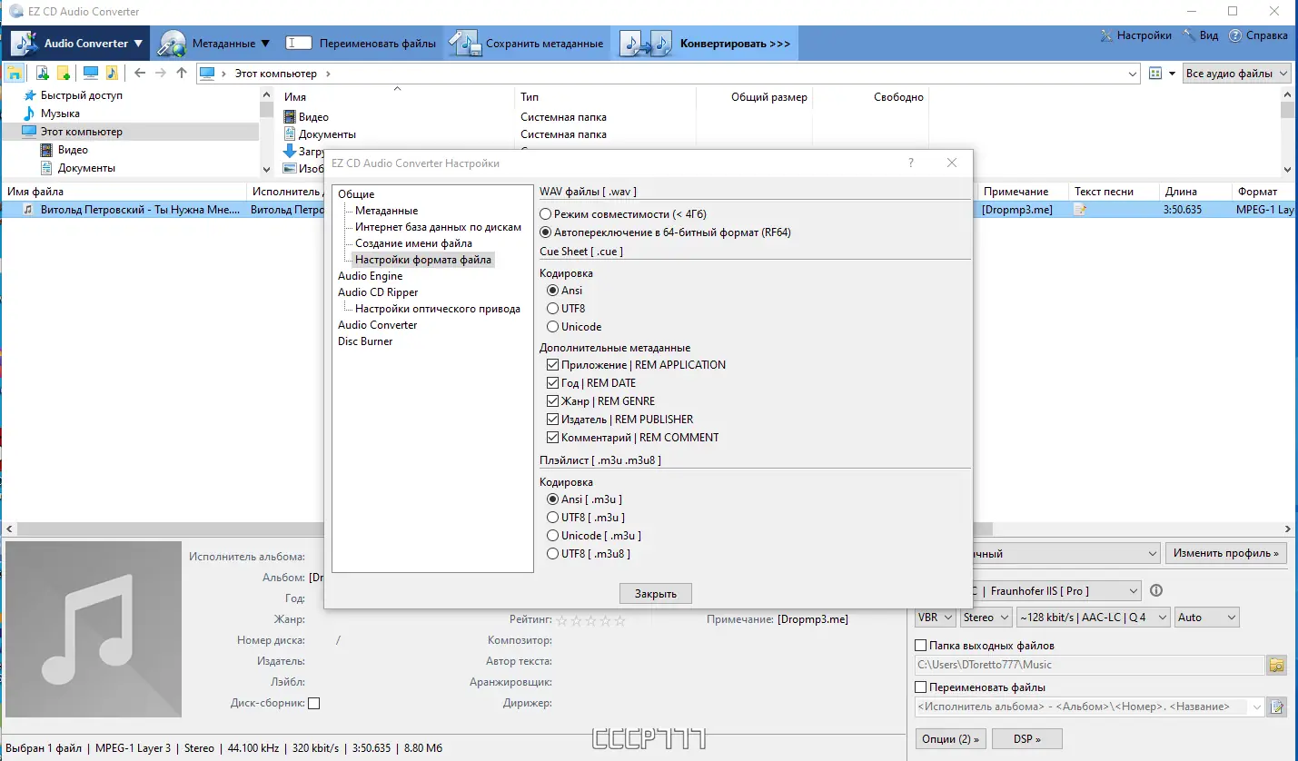 - Поддержка широкого спектра аудиоформатов с возможностью конвертировать из одного в другой.