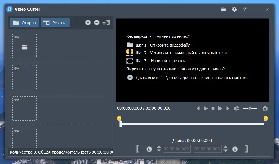 - Многофункциональная резка видео с установкой начальной и конечной точек