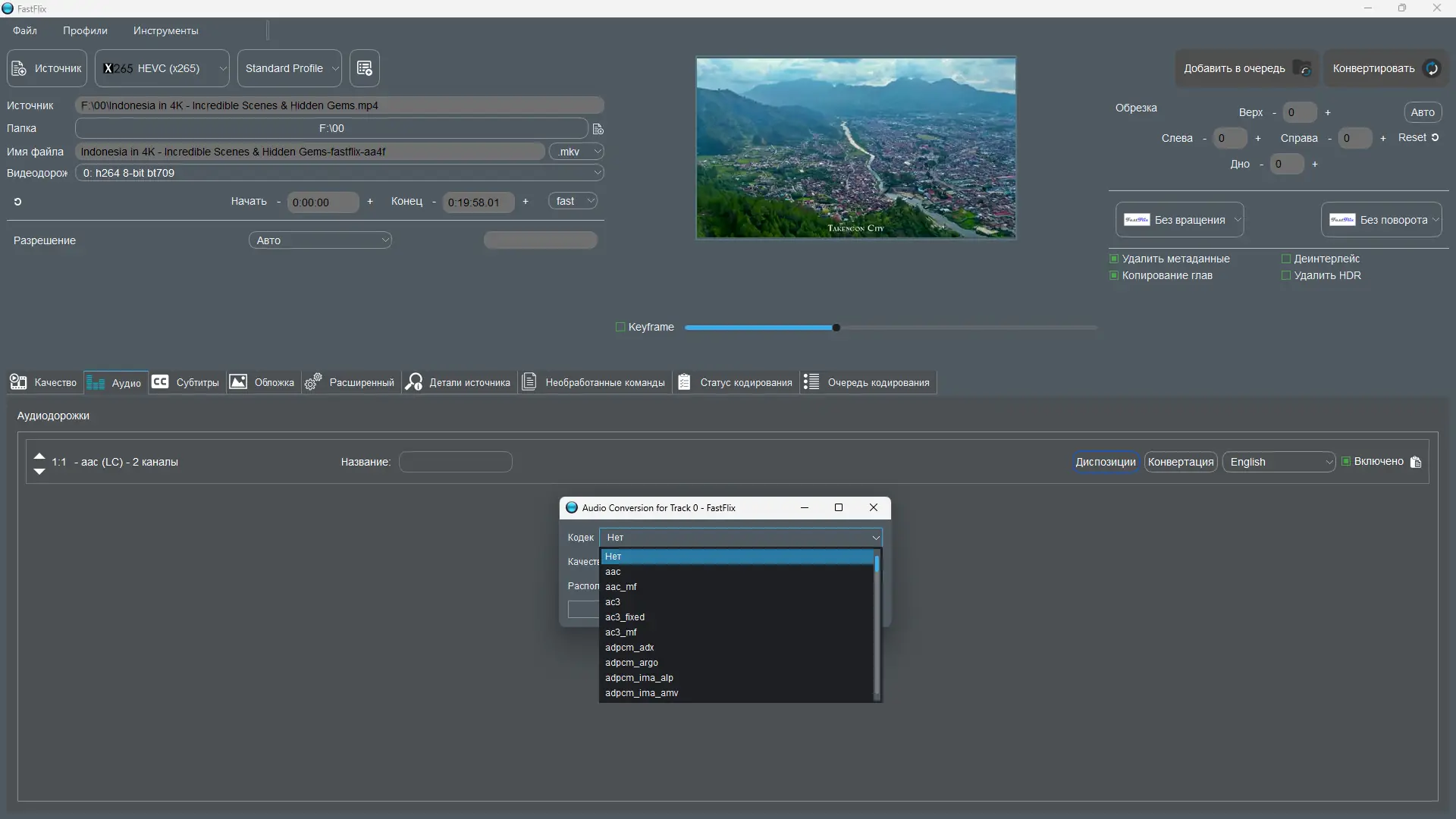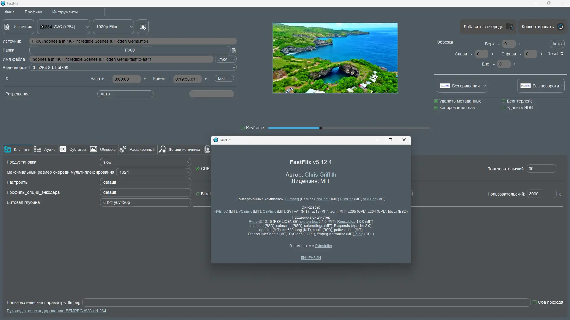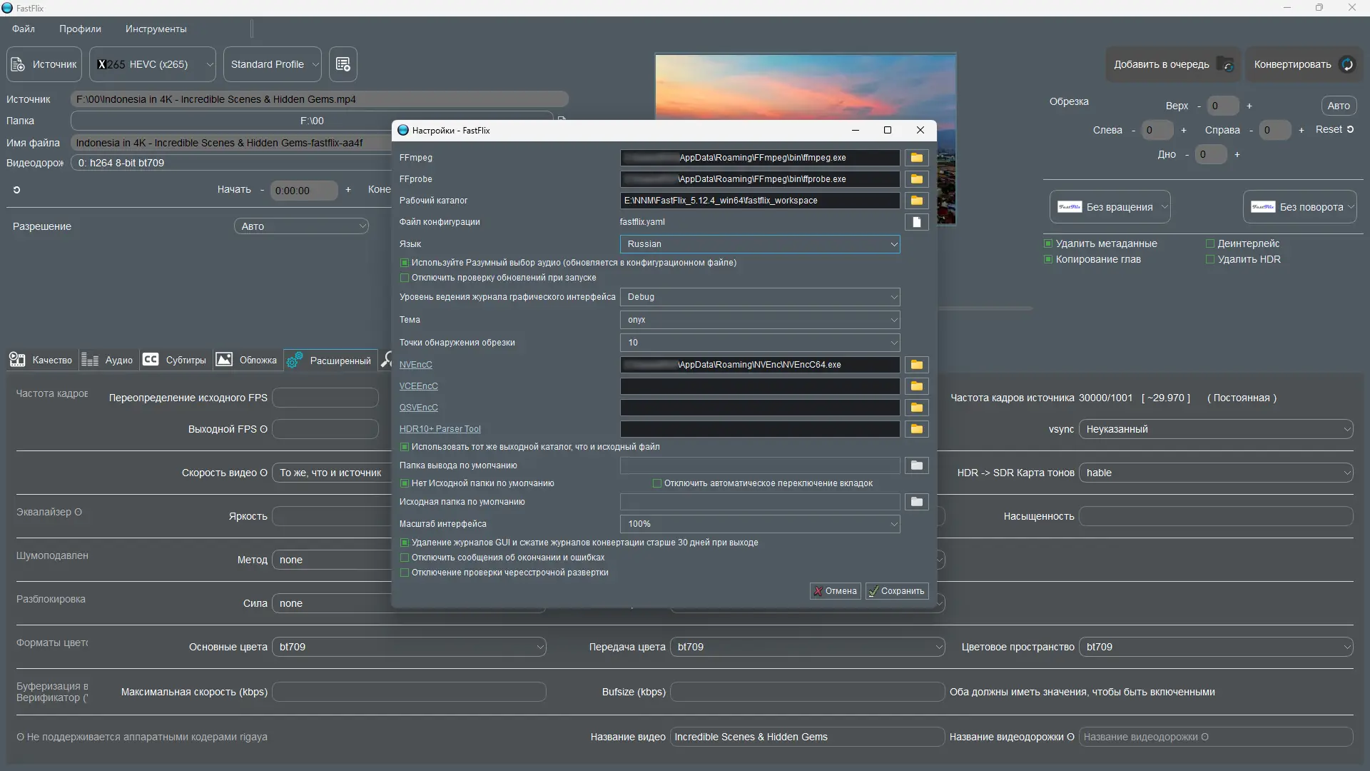 FastFlix предоставляет интуитивно понятный графический интерфейс для работы с мощными библиотеками FFmpeg. Обеспечивая поддержку сохранения метаданных HDR10 для кодеков x265, NVEncC HEVC и VCEEncC HEVC, программа стремится к максимальной качественной и быстрой обработке. При первом запуске пользователю предложат загрузить необходимую версию FFmpeg (от 4.3 и выше), что дает гарантии совместимости и стабильной работы. В интерфейсе доступны продвинутые настройки для регулировки битрейта, глубины цвета, CRF, кадровой частоты и других параметров. Можно выбрать профиль кодирования, создавать собственные профили и просматривать детализацию текущего файла, включая тип кодека, разрешение и профиль. Также реализована возможность редактирования субтитров, настройки обложек и параметров качества. В отдельной вкладке собраны расширенные опции для более точной настройки процесса конвертации.
