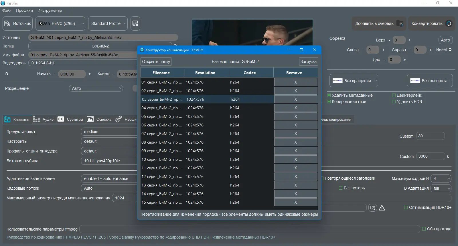 FastFlix — это универсальный графический интерфейс для эффективного видеокодирования, позволяющий сохранять важные метаданные HDR10 и поддерживающий работу с различными кодировщиками. Программа предназначена для упрощения процесса конвертации видео и предоставляет удобные инструменты для настройки параметров качества и профилей.