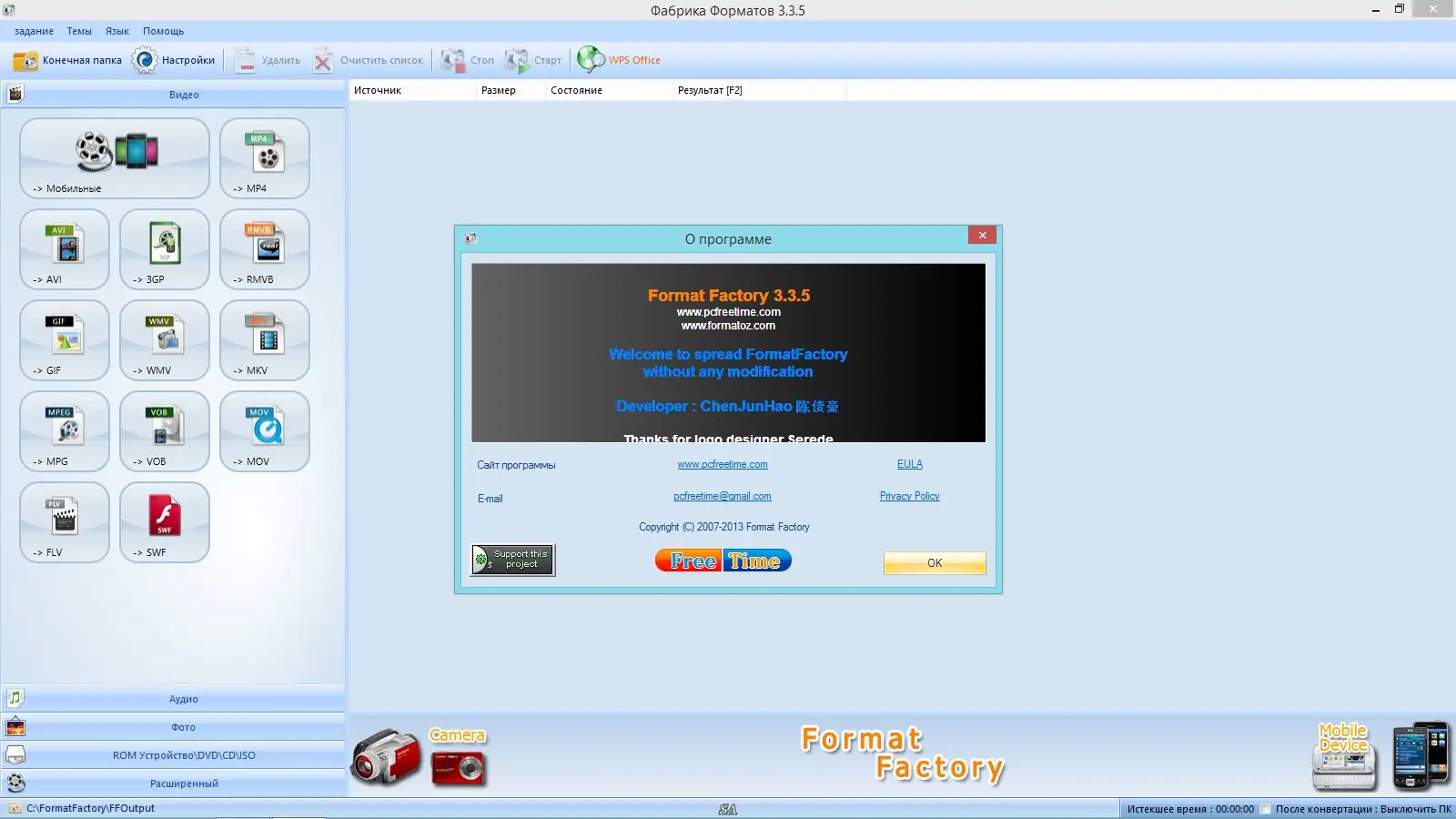 Format Factory — это универсальный конвертер для различных типов мультимедийных файлов, поддерживающий популярные форматы видео, аудио и изображений. Программа способна превращать видеофайлы в MP4, AVI, WMV, FLV и другие, а также преобразовывать аудио в MP3, WMA, WAV, и даже восстанавливать повреждённые мультимедийные файлы. Дополнительные функции включают обработку изображений, такие как увеличение, вращение и добавление тегов. Format Factory также позволяет копировать DVD в видеоформаты и сохранять аудио с CD. Поддержка русского языка и возможности для расширенной настройки делают её удобным инструментом для работы с мультимедиа.