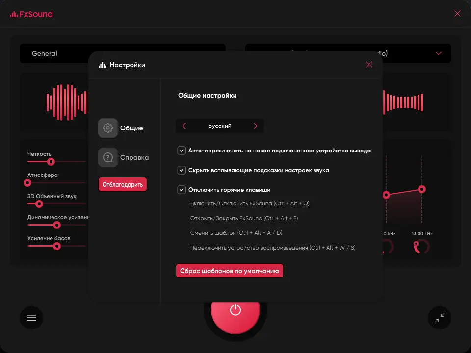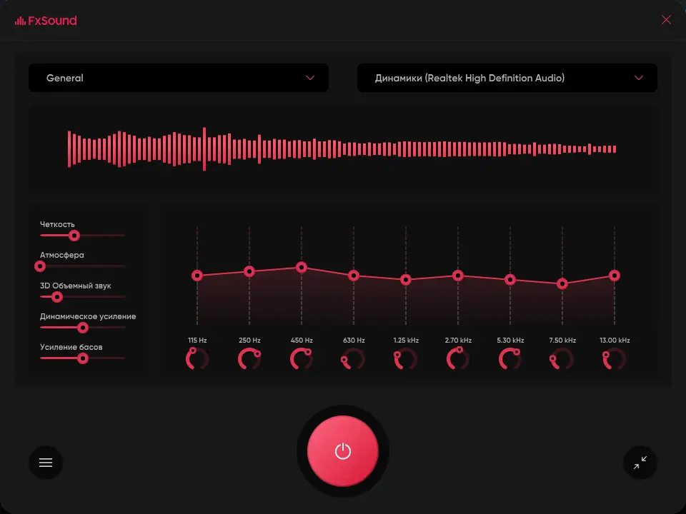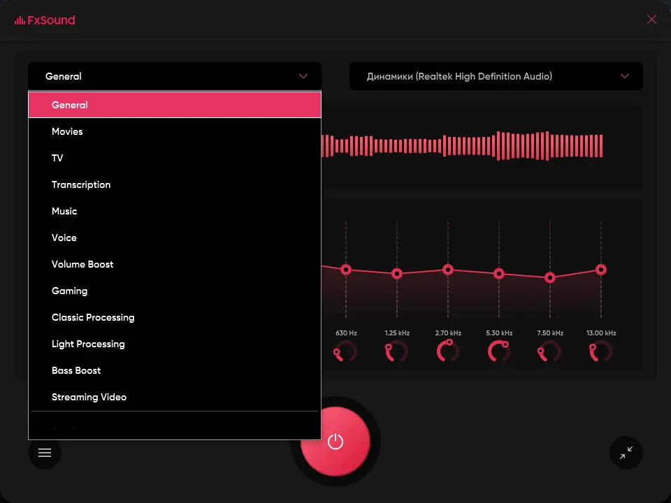 - Запустите FxSound и выполните настройку с учетом ваших предпочтений и характеристик звуковой системы.