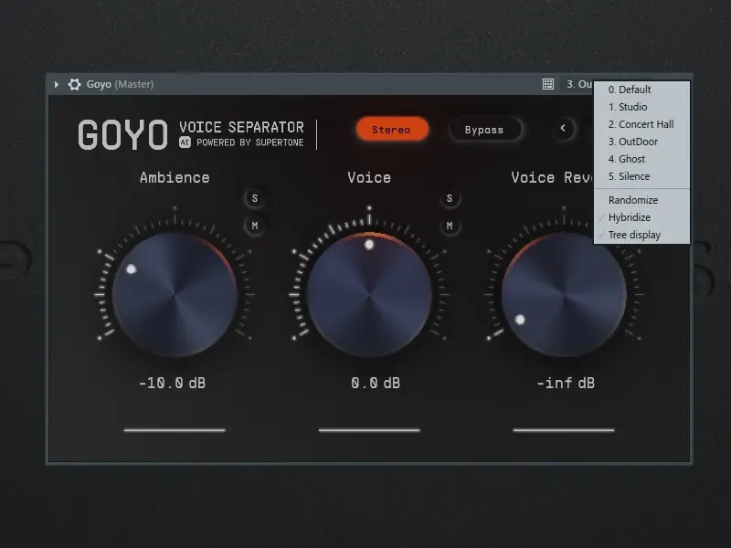 Этот мощный vst-плагин помогает избавиться от окружающих шумов, звукового эха в помещении и нежелательного голоса в звуковой дорожке. Основная идея GOYO заключается в разделении аудио на три отдельные каналы: окружающая среда, голос и пространственное окружение, что обеспечивает полный контроль над каждым компонентом. Благодаря такому подходу пользователь может легко настроить уровень подавления шумов, реверберации и голосовых артефактов, добиться студийного качества звука. В 2024 году данный инструмент станет незаменимым помощником для музыкантов, редакторов и звукорежиссёров.