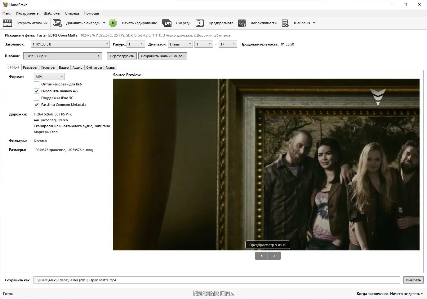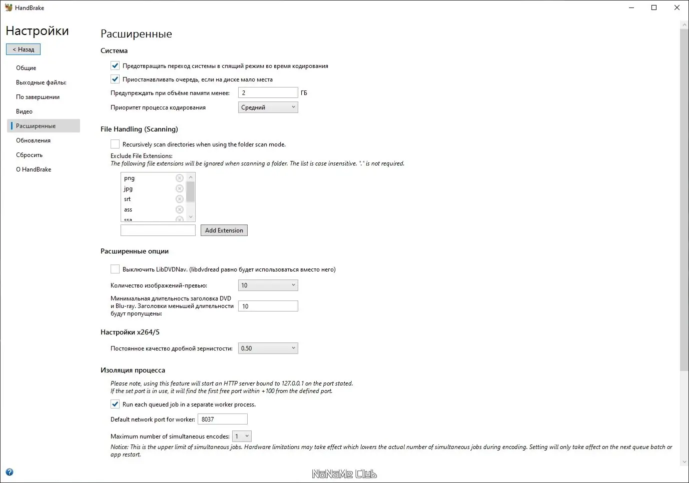 - Использование фильтров: Deinterlace, Decomb, Deblock, Detelecine, Grayscale, Cropping, Scaling
