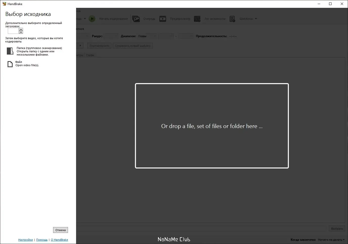 - Запустите исполняемый файл «HandBrake» или его ярлык для начала работы.