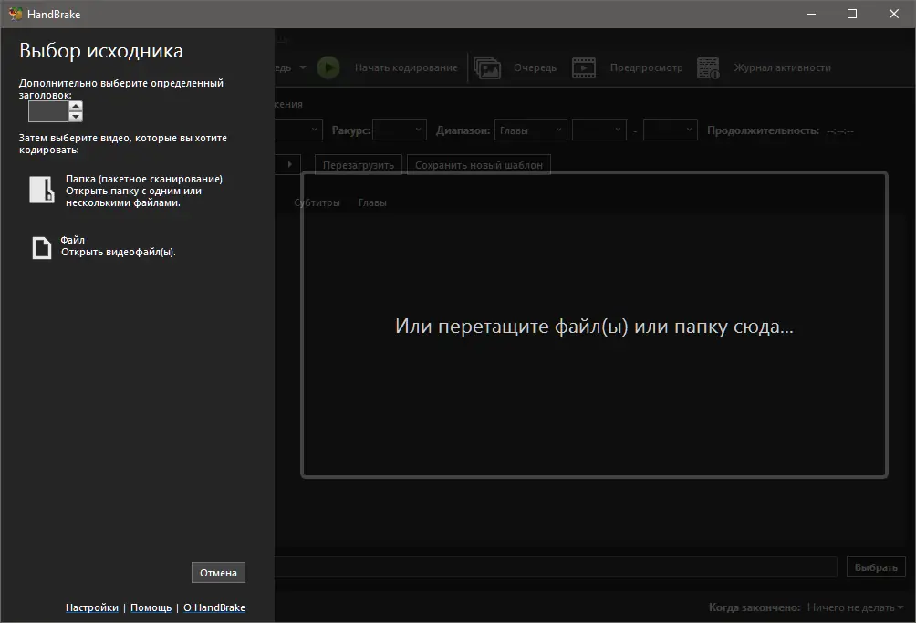 - Запустите файл HandBrake.exe для начала работы.