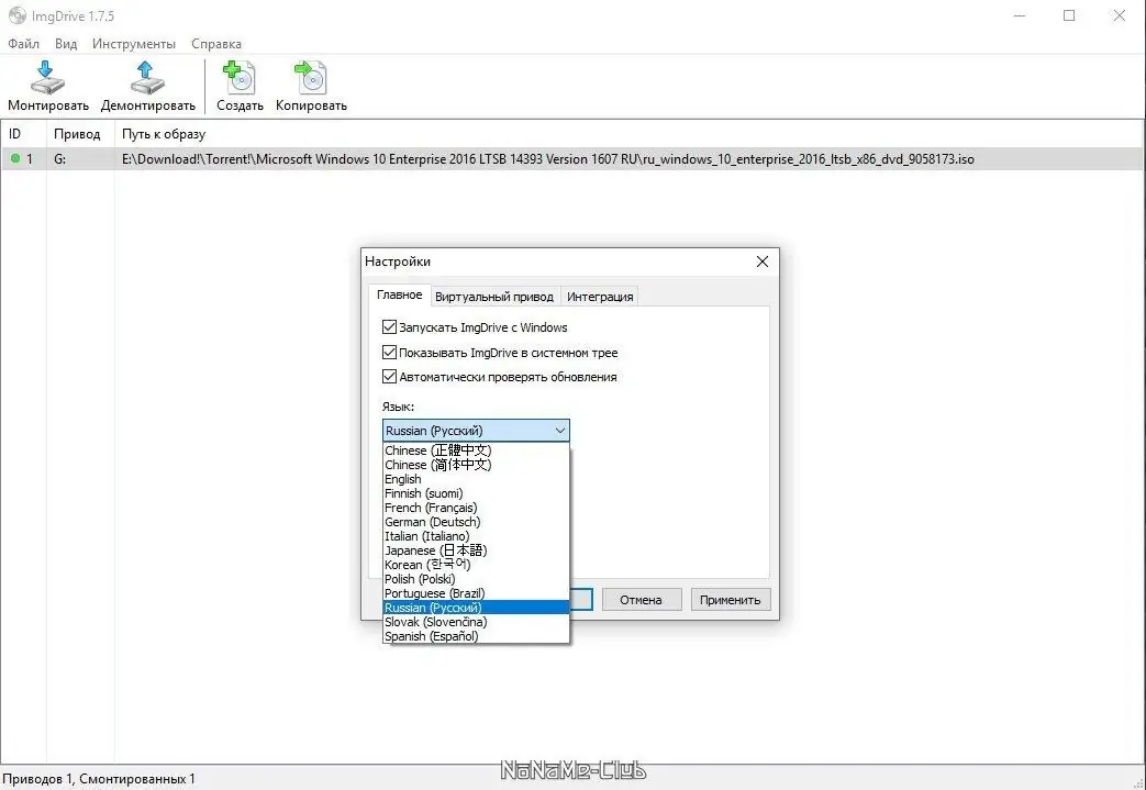 - Монтирование образов ISO, CUE, NRG, MDS/MDF, CCD, ISZ одним кликом.