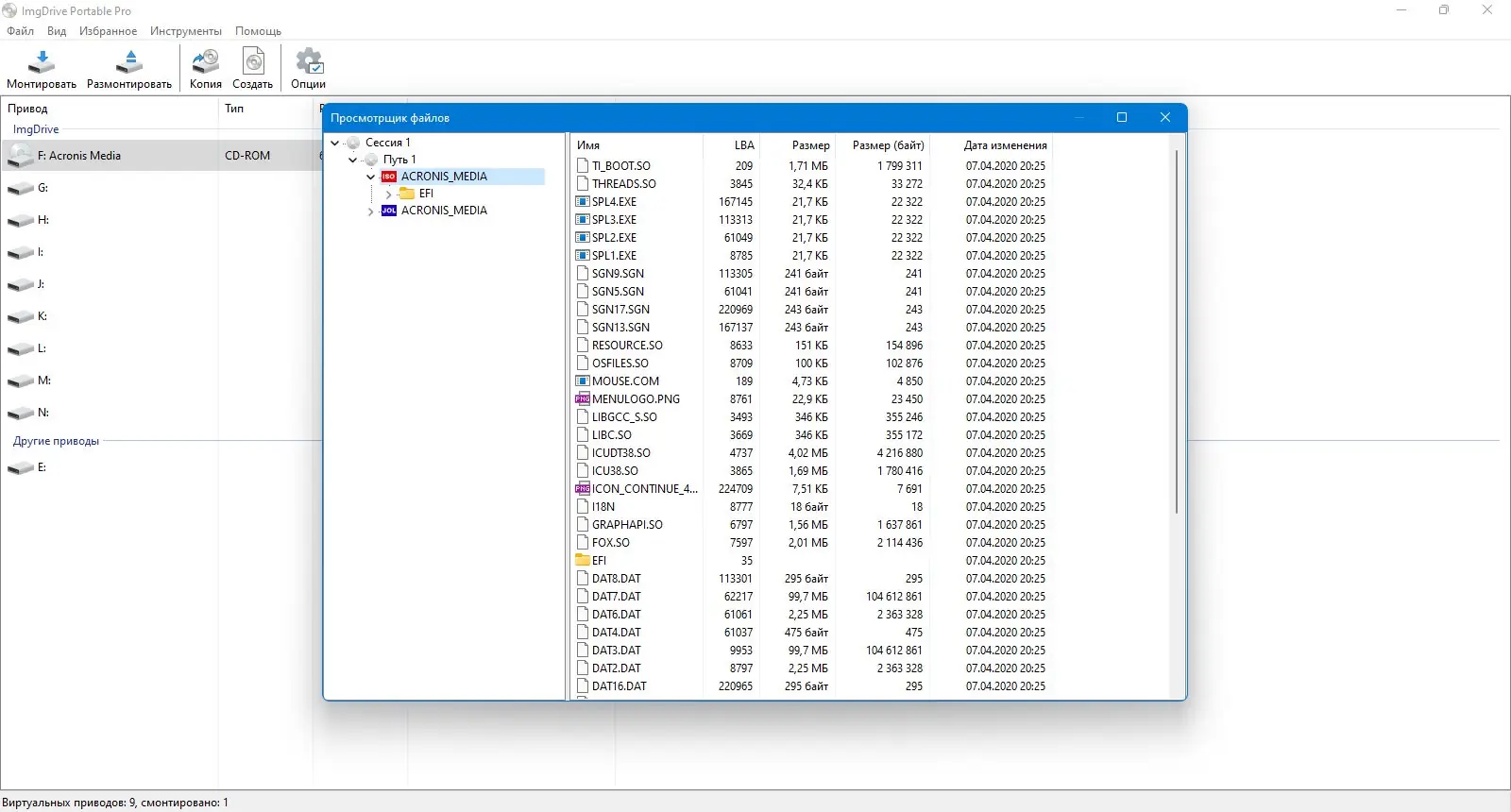 - Поддержка до 4 виртуальных приводов одновременно и мульти-сессионных образов.