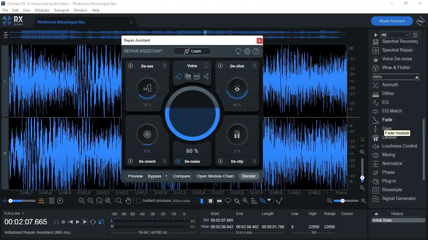 - Модули для удаления гулов, щелчков, отсечения и изоляции диалога;