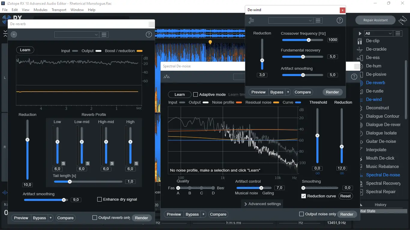 - Мощные инструменты De-hum, точное устранение монофонических шумов с использованием анализа спектра.