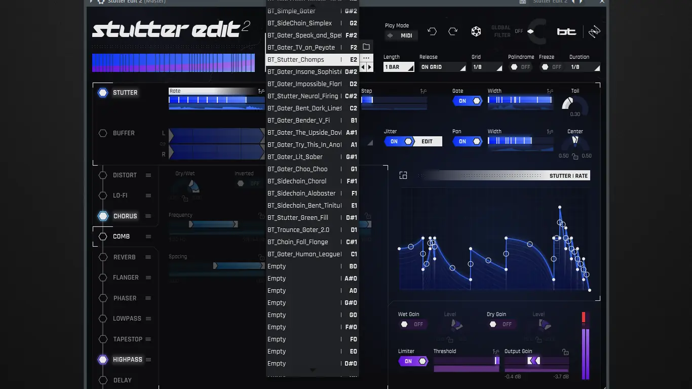 - Элементы управления Stutter и Buffer для нарезки и изменения микроскопических аудио-фрагментов