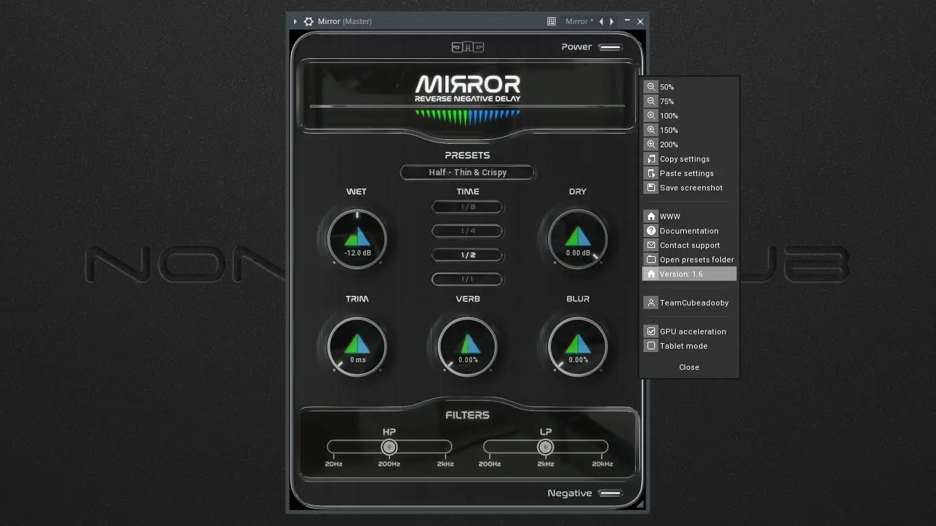 JMG Sound — Mirror — это инновационный плагин, позволяющий создавать эффект обратной отрицательной задержки, который слышен раньше исходного звука. Он автоматизирует создание реверсивных эффектов и реверберации, значительно упрощая процесс обработки звука и расширяя творческие возможности музыкантов и продюсеров.