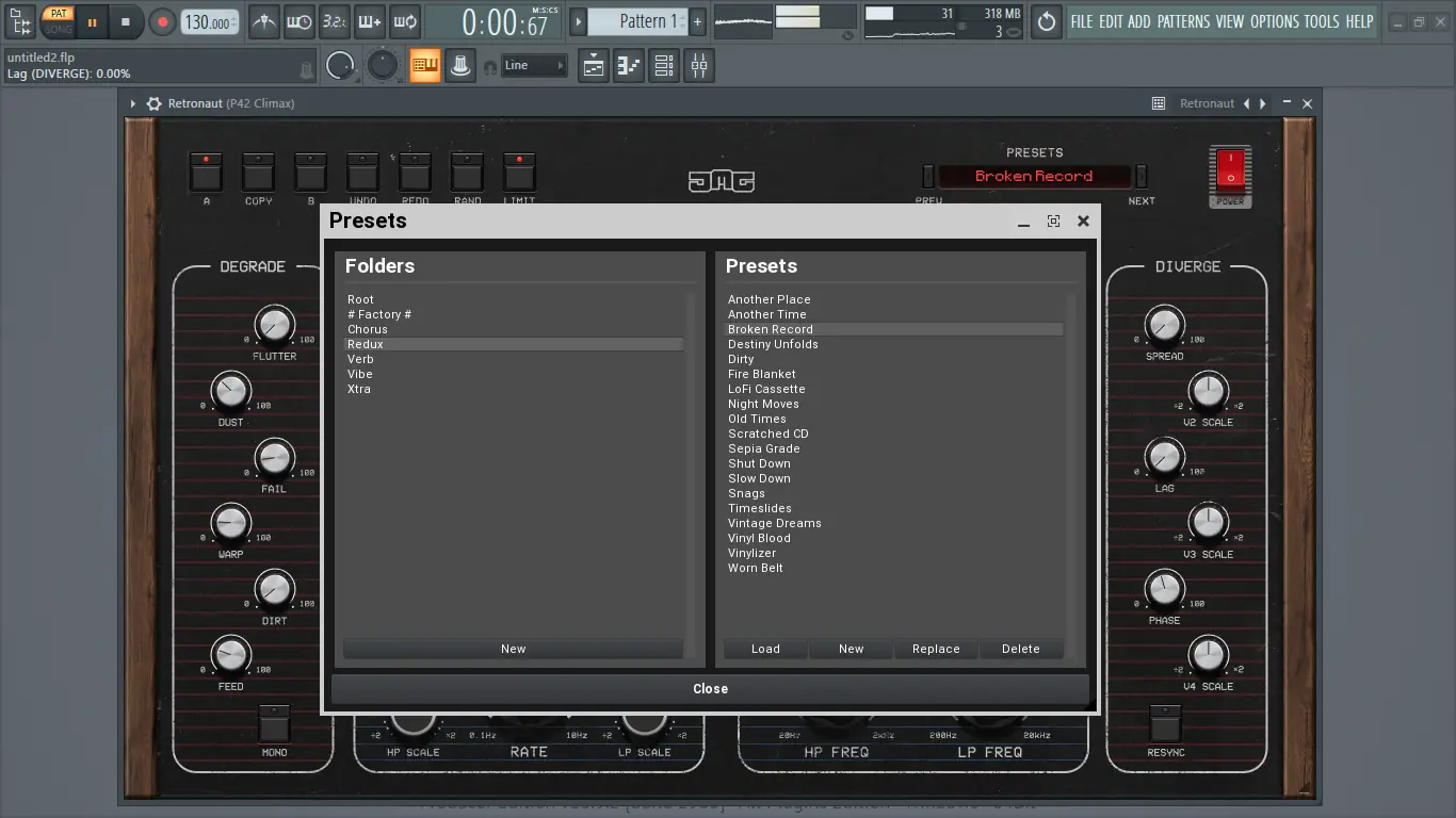 - Секции Degrade и Warp, позволяющие добавлять эффекты деградации и дрейфа тона, создавая лофайную атмосферу.