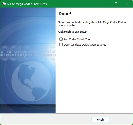 - После завершения рекомендуется перезагрузить систему для правильной интеграции кодеков.