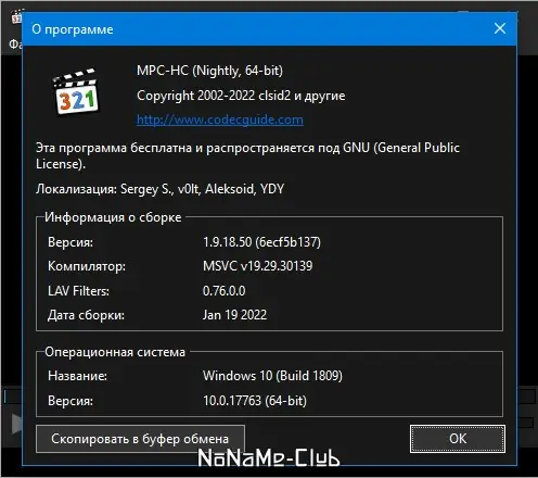 | Дополнительно | Обновлённые компоненты MPC-HC, LAV Filters и другие |